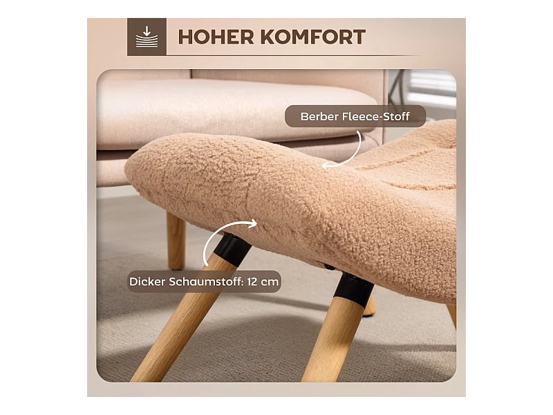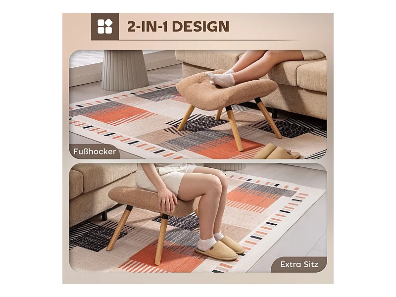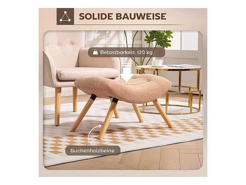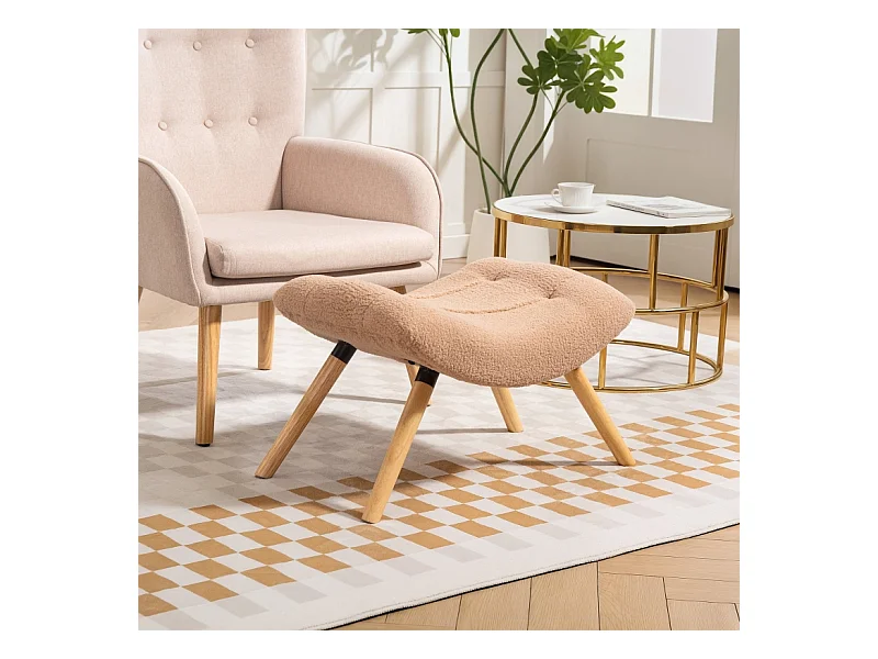 Pouf moderne avec pieds en bois, tissu en fleece, multifonction, brun (67x45x38 cm)