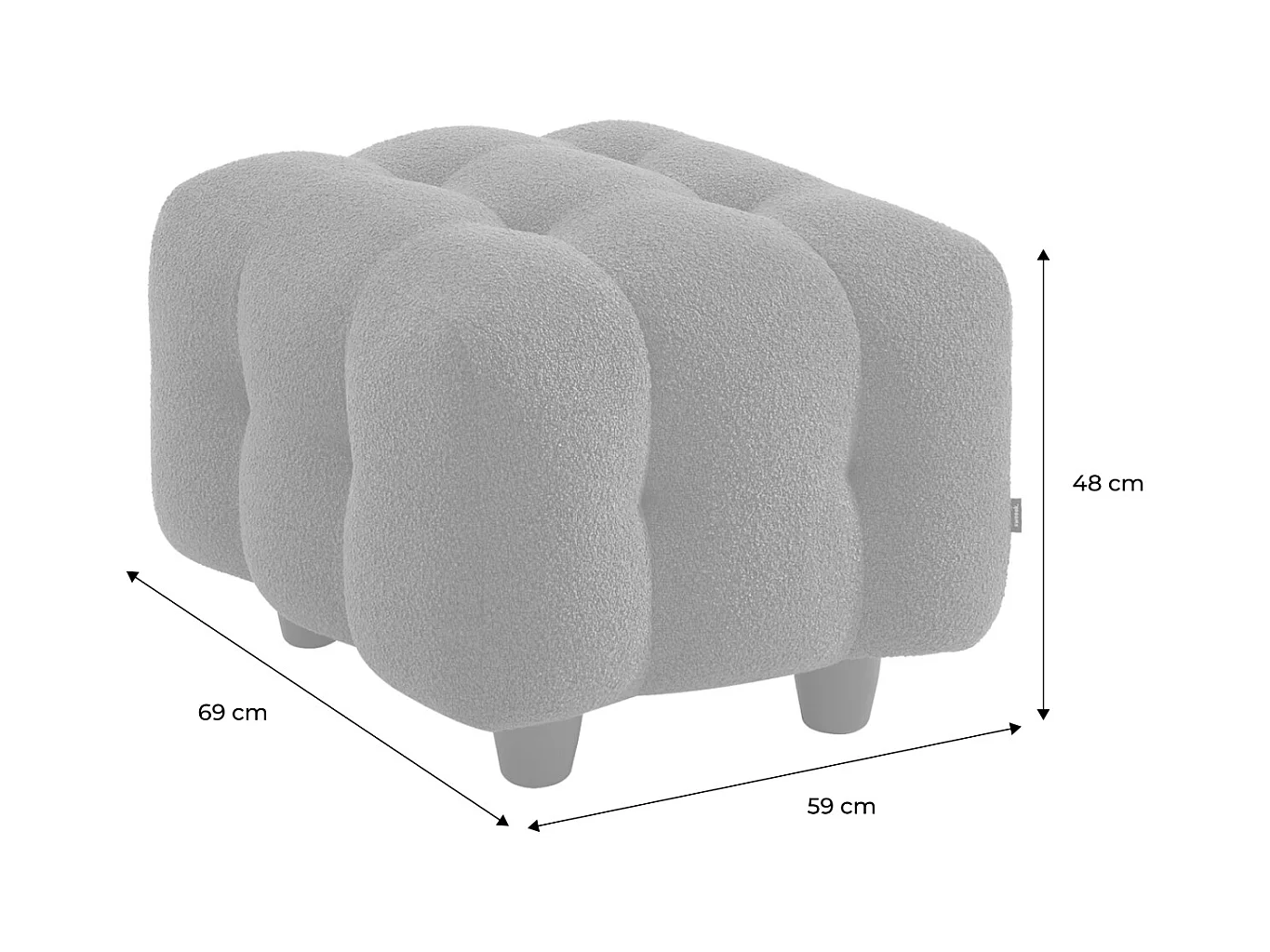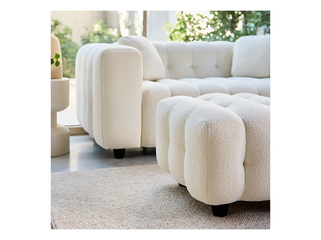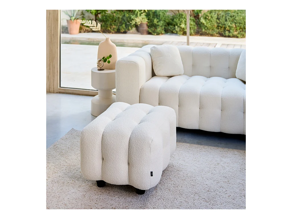 Pouf. module pour canapé. repose-pieds pour canapé 2 places en bouclette texturée crème L 69 x P 59 x H 48cm - Leon