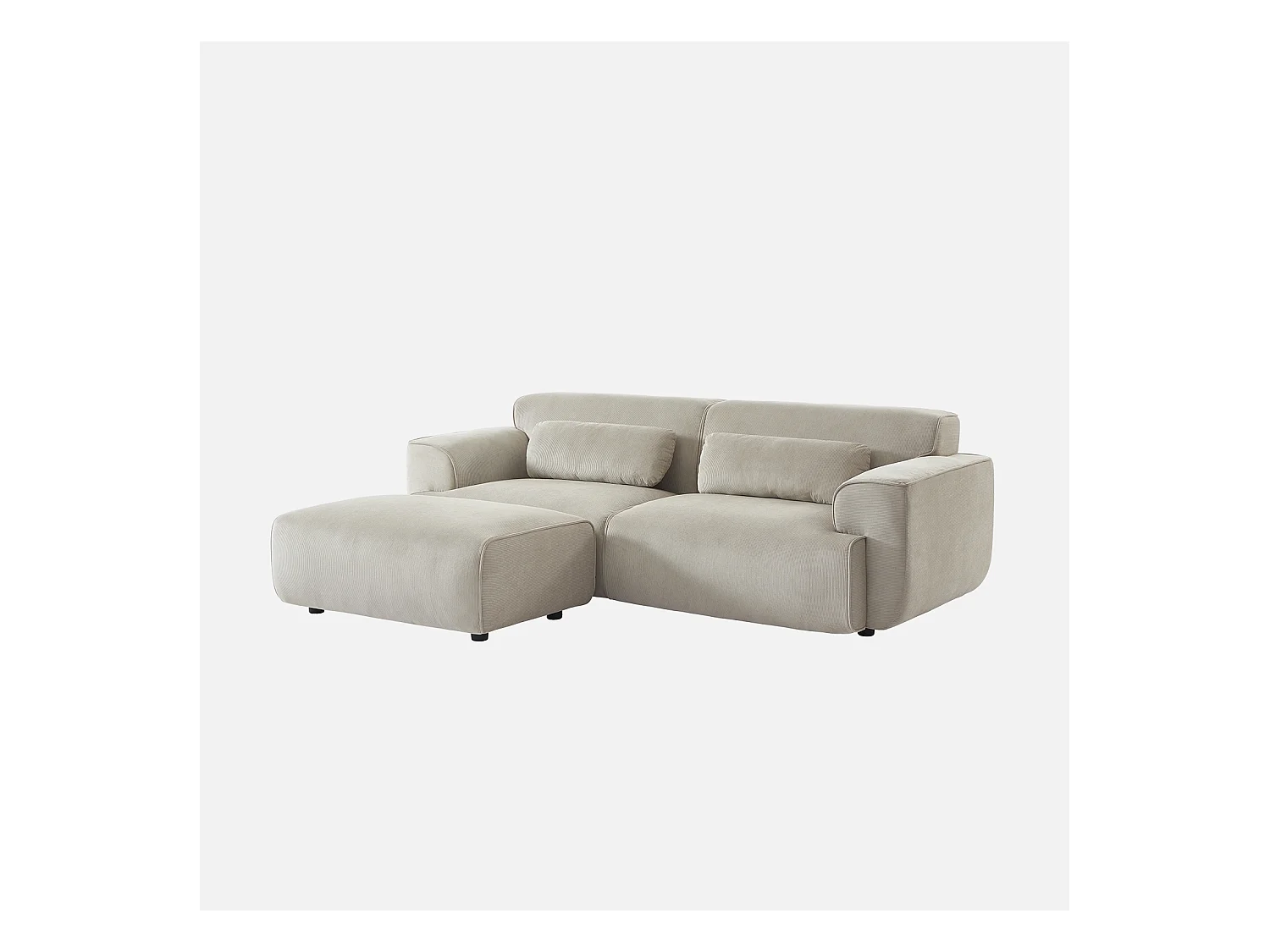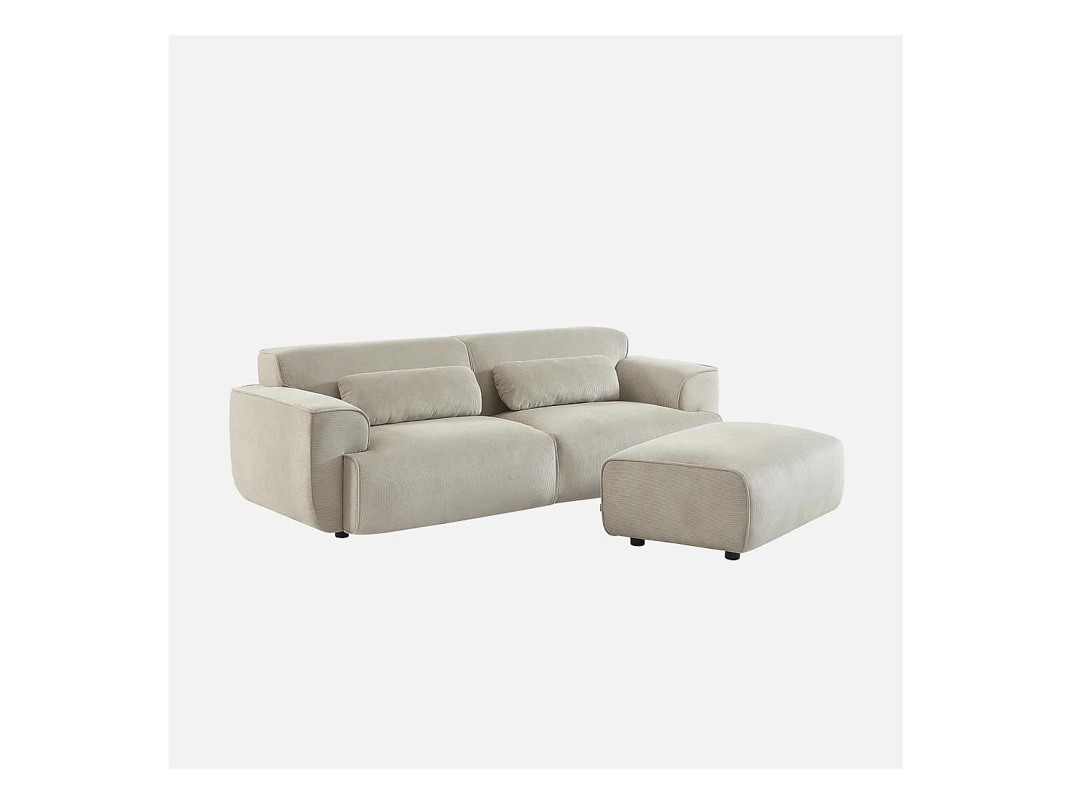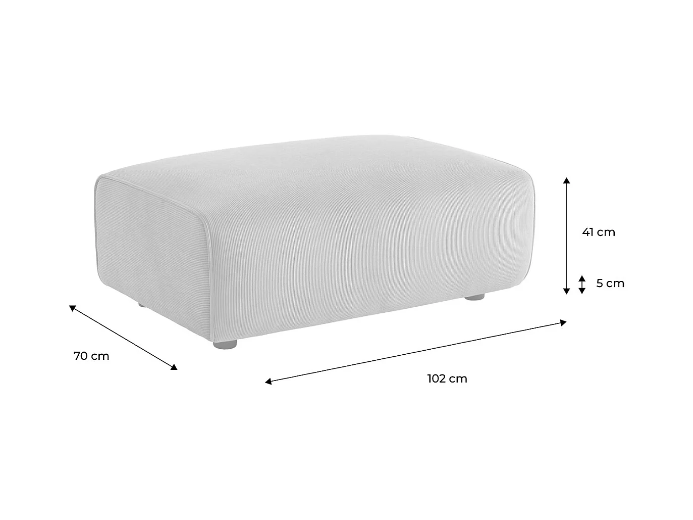 Pouf. module pour canapé. repose-pieds pour canapé 3 places en velours côtelé greige. L 102 x P 70 x H 41cm - Wallas