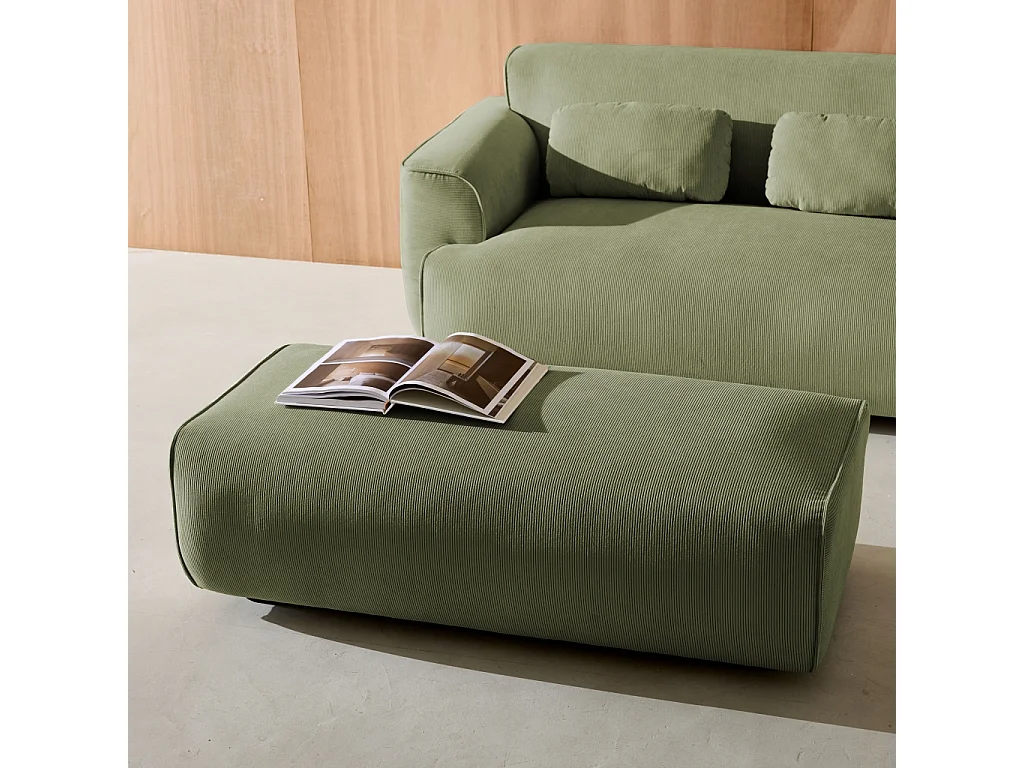 Pouf. module pour canapé. repose-pieds pour canapé d'angle 2 places en velours côtelé vert. L 123 x P 60 x H 41cm - Wallas