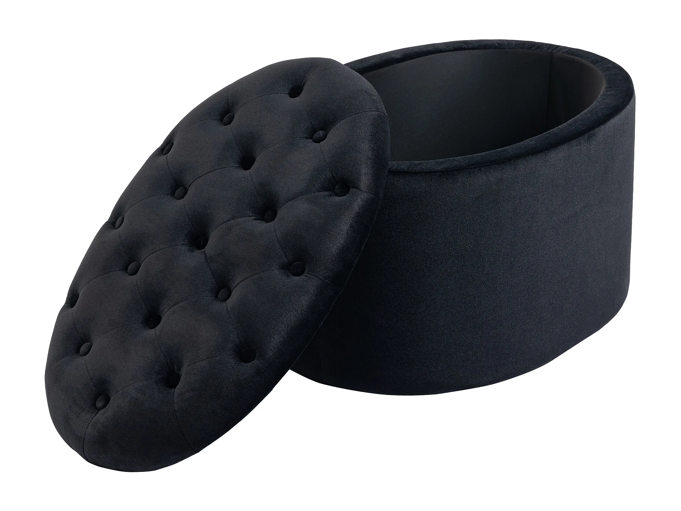 Pouf ovale style Chesterfield plateau assise capitonné rembourré dim. 71 x 52 x 42 cm velours noir