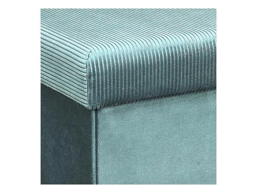 Pouf repose-pied tabouret design avec coffre de rangement velours côtelé acier brossé doré bleu foncé