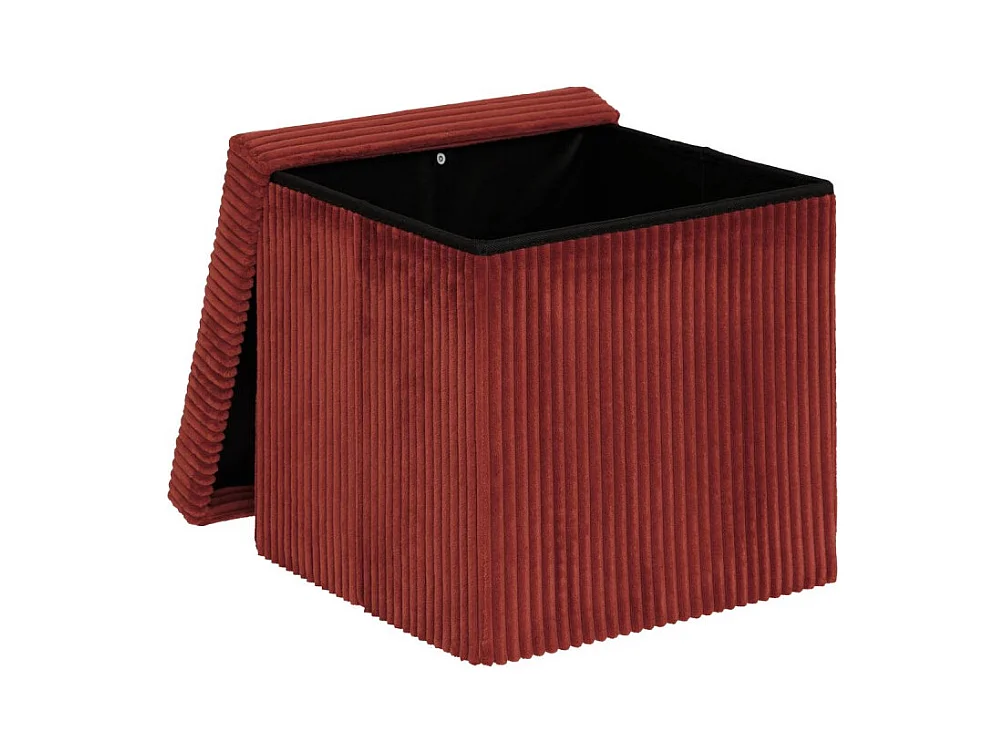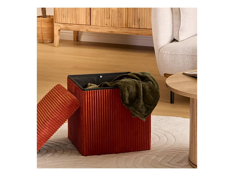 Pouf terracotta en tissu avec rangement pour coussins ou plaids