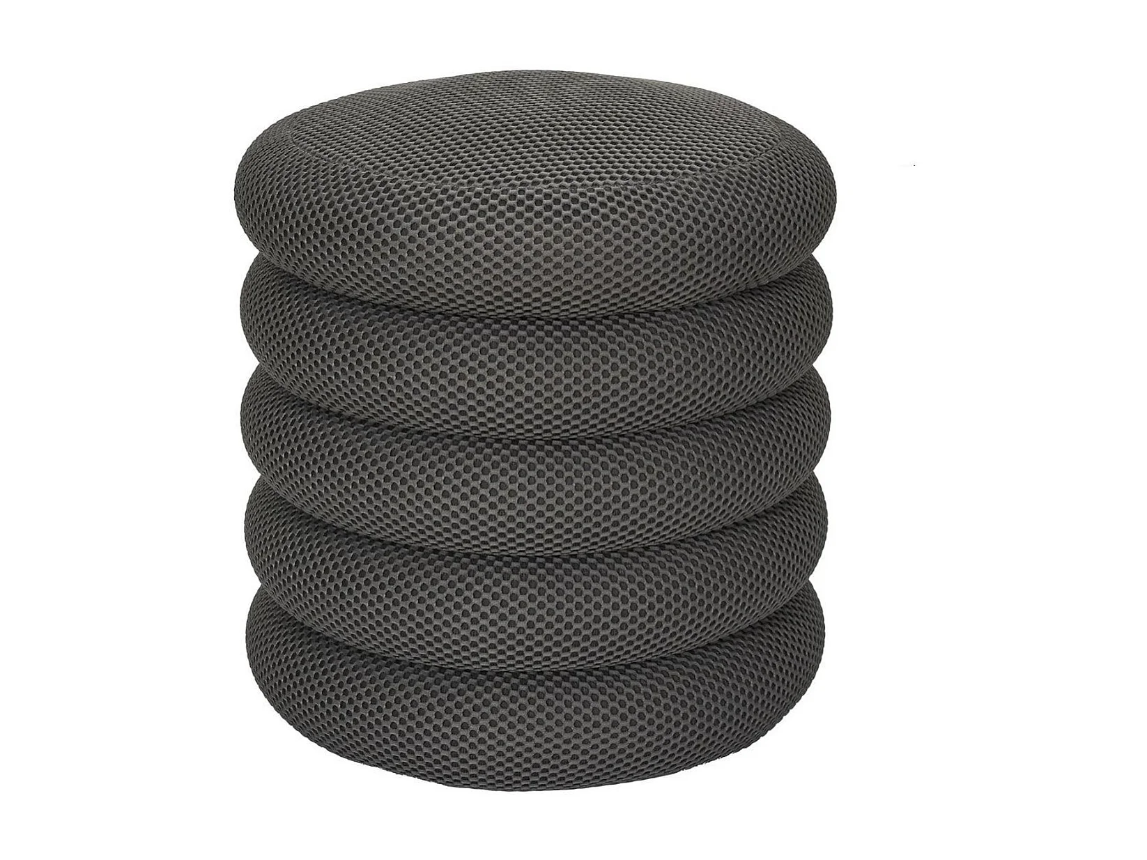 Pouf rangement rond en tissu texturé maille 3D gris - ELECTRON