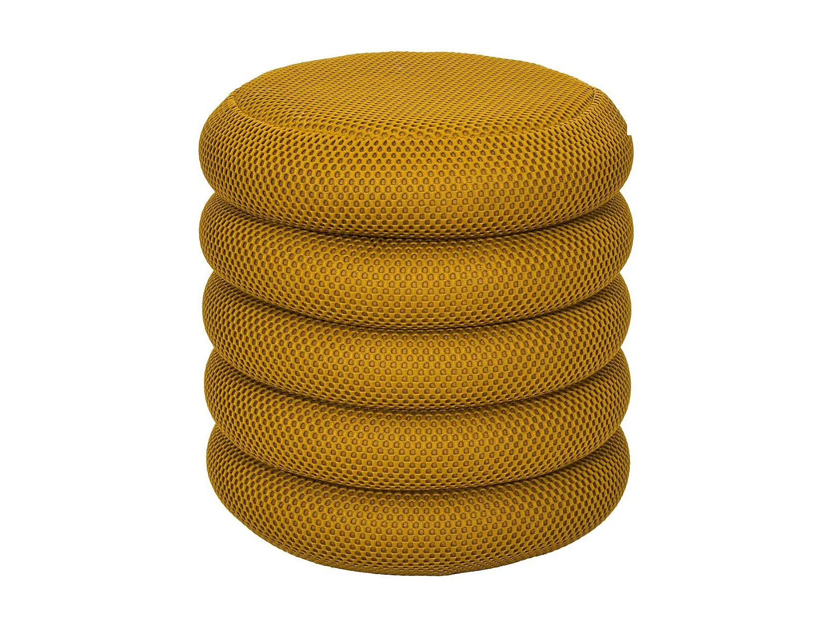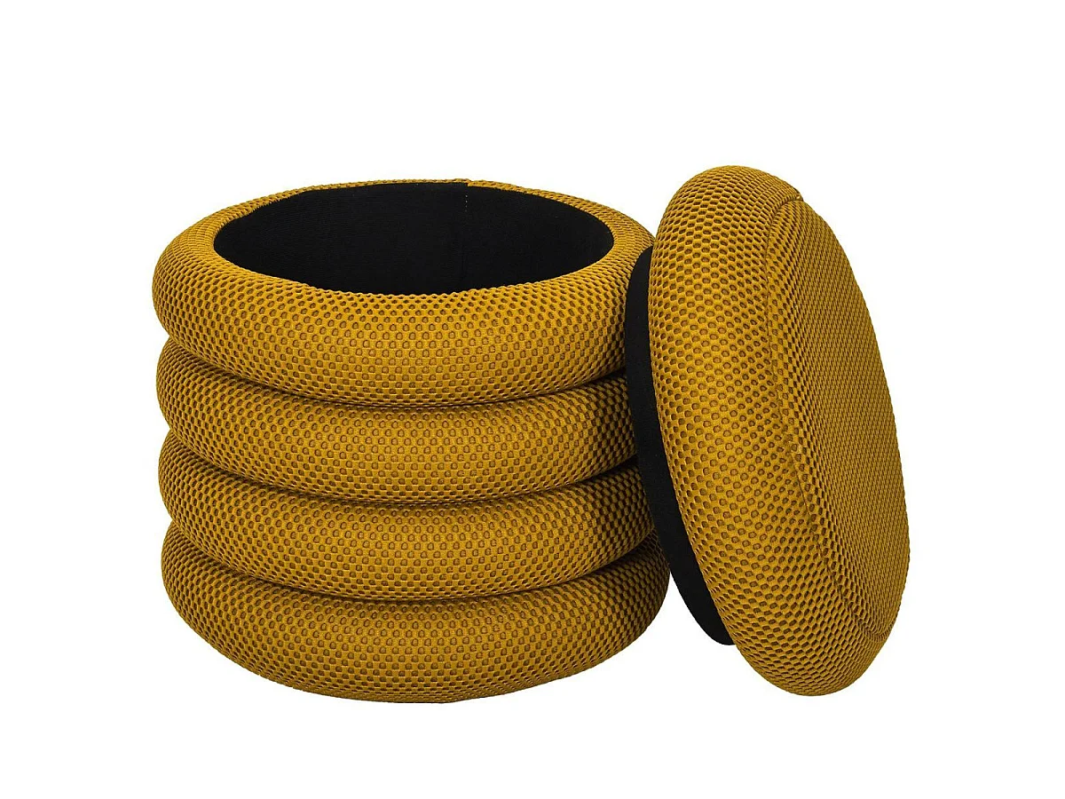 Pouf rangement rond en tissu texturé maille 3D jaune - ELECTRON