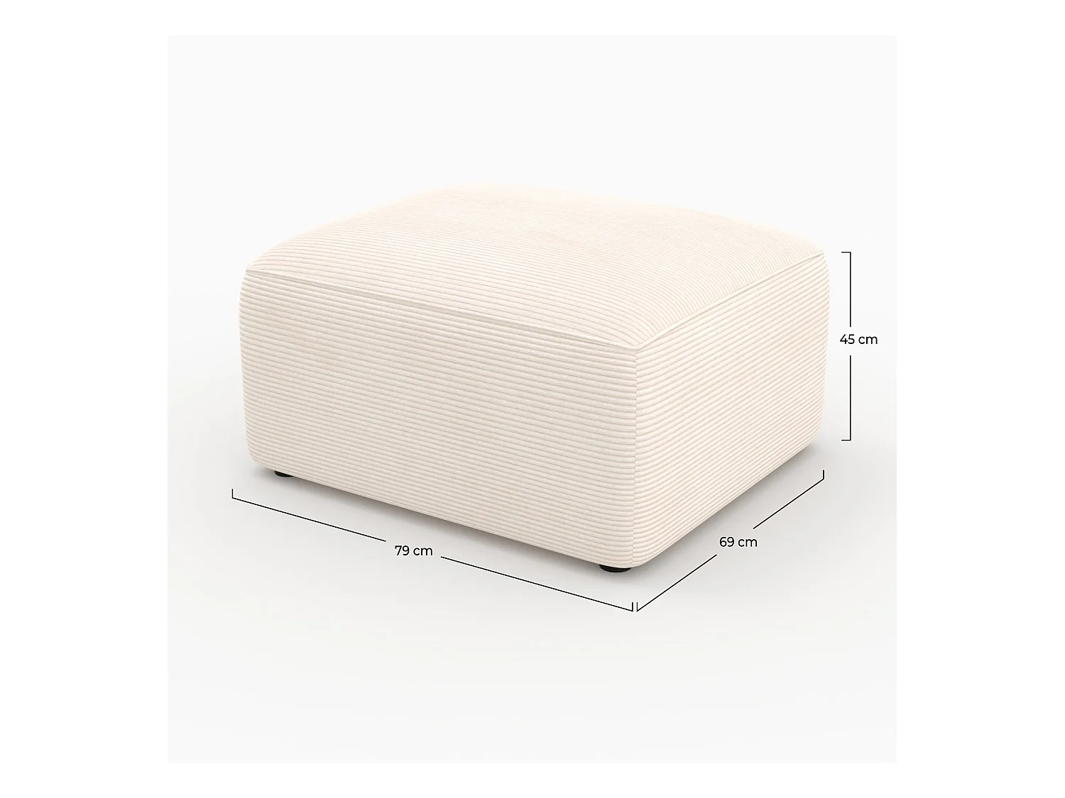 Pouf rectangulaire pour canapé modulable en velours blanc cassé - Mina