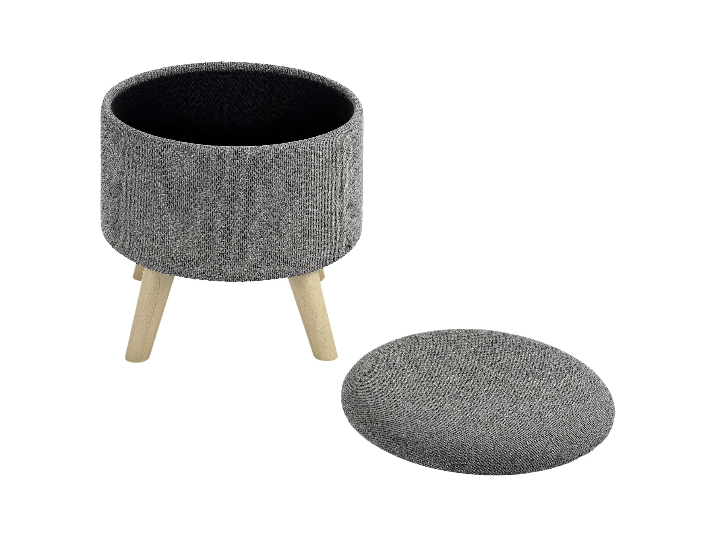 Pouf repose-pied tabouret avec coffre de rangement - pieds bois tissu aspect lin gris