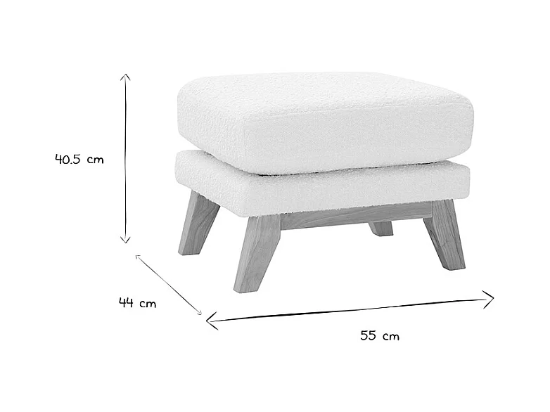 Pouf repose-pieds déhoussable scandinave en tissu effet laine bouclée blanc cassé et bois clair OSLO