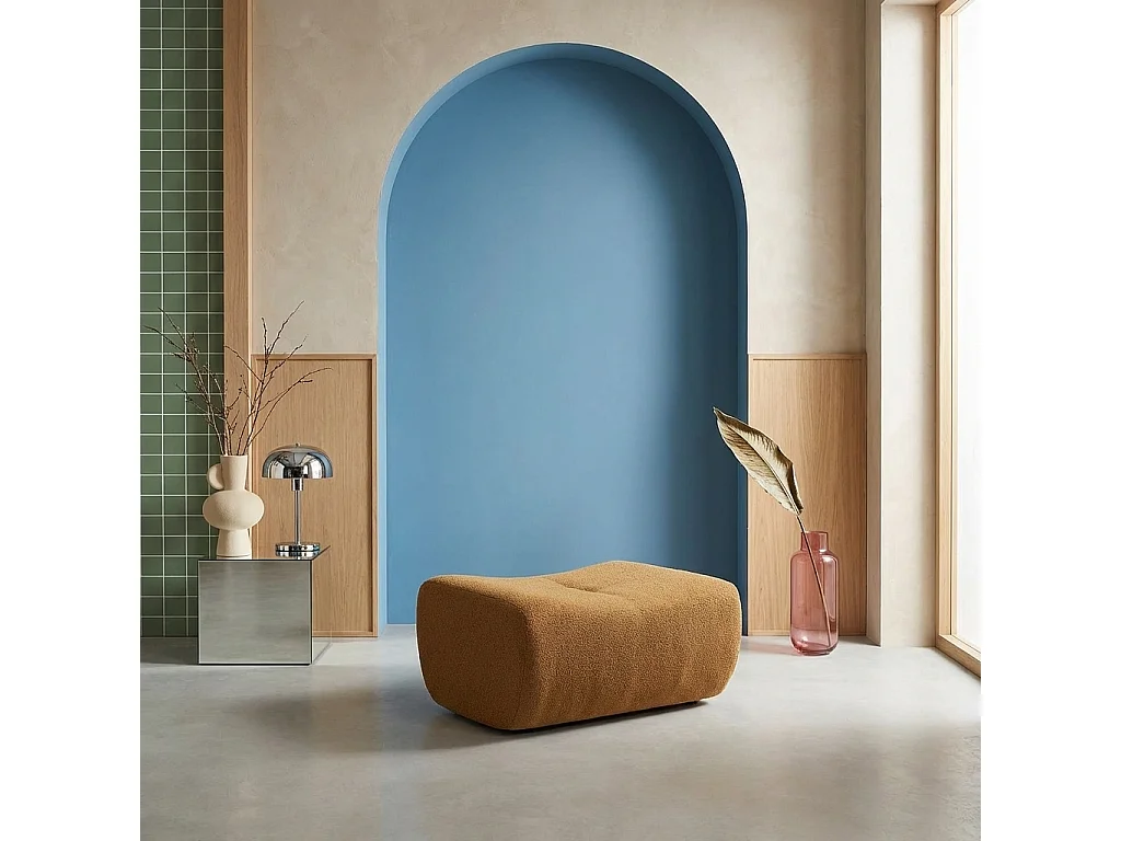 Pouf. repose-pieds pour chauffeuse Sokol bouclette texturée moutarde - Sokol