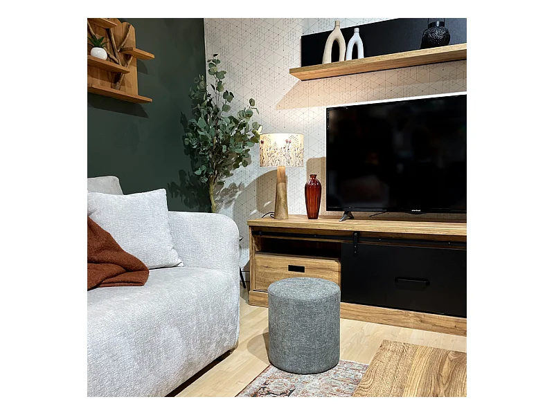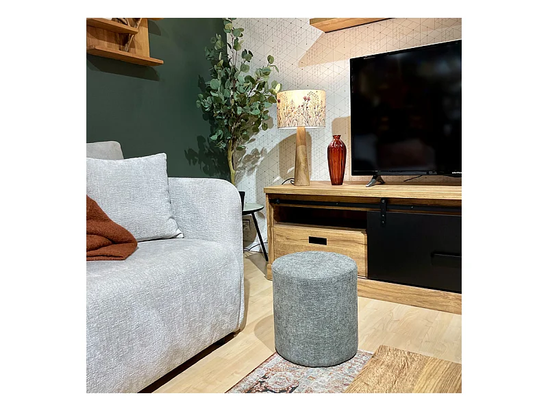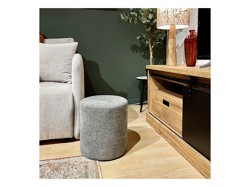 Pouf en tissu texturé Gris clair D. 37 x H. 40 cm