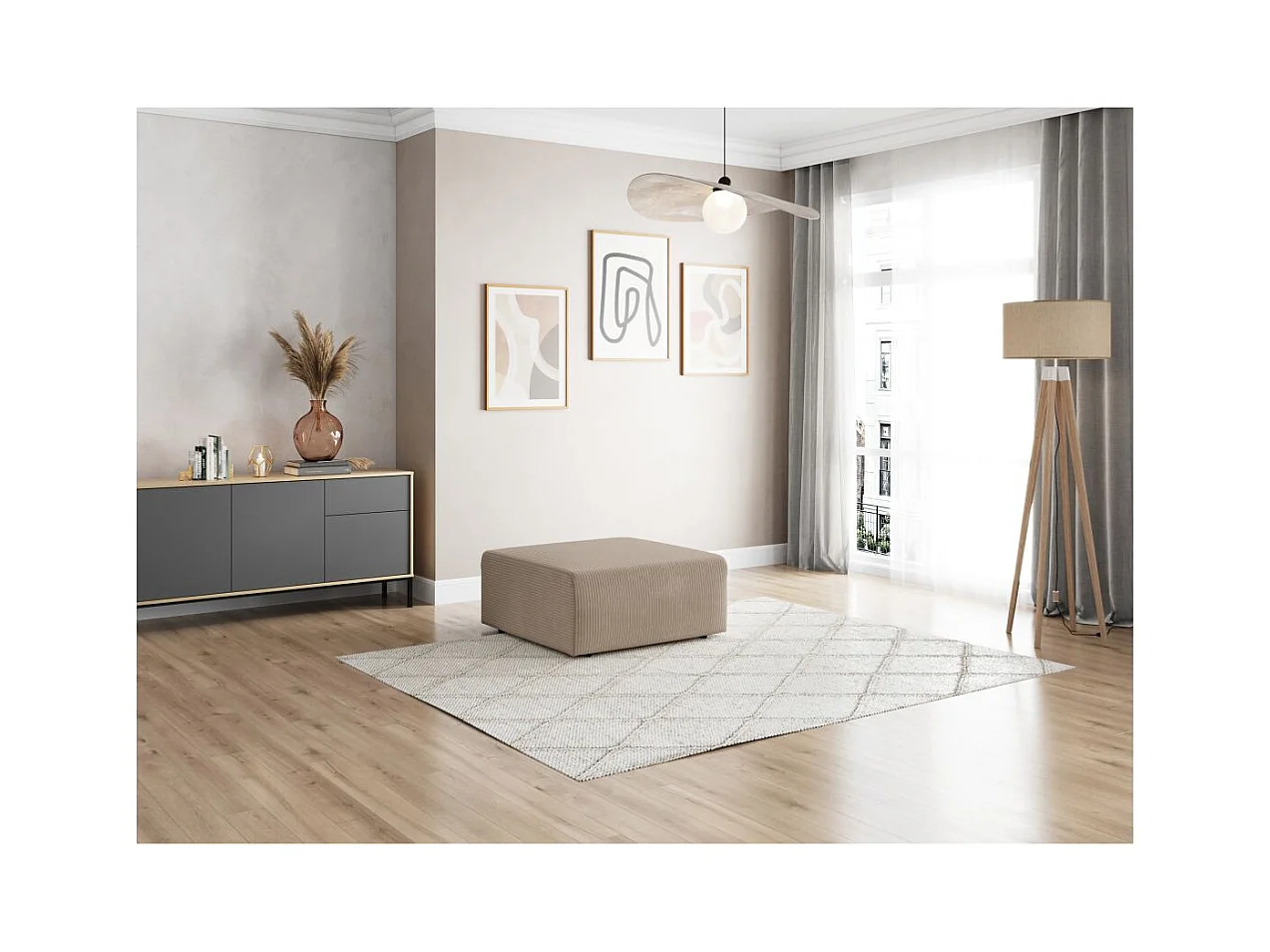 Pouf modulable et convertible - Velours côtelé - Taupe