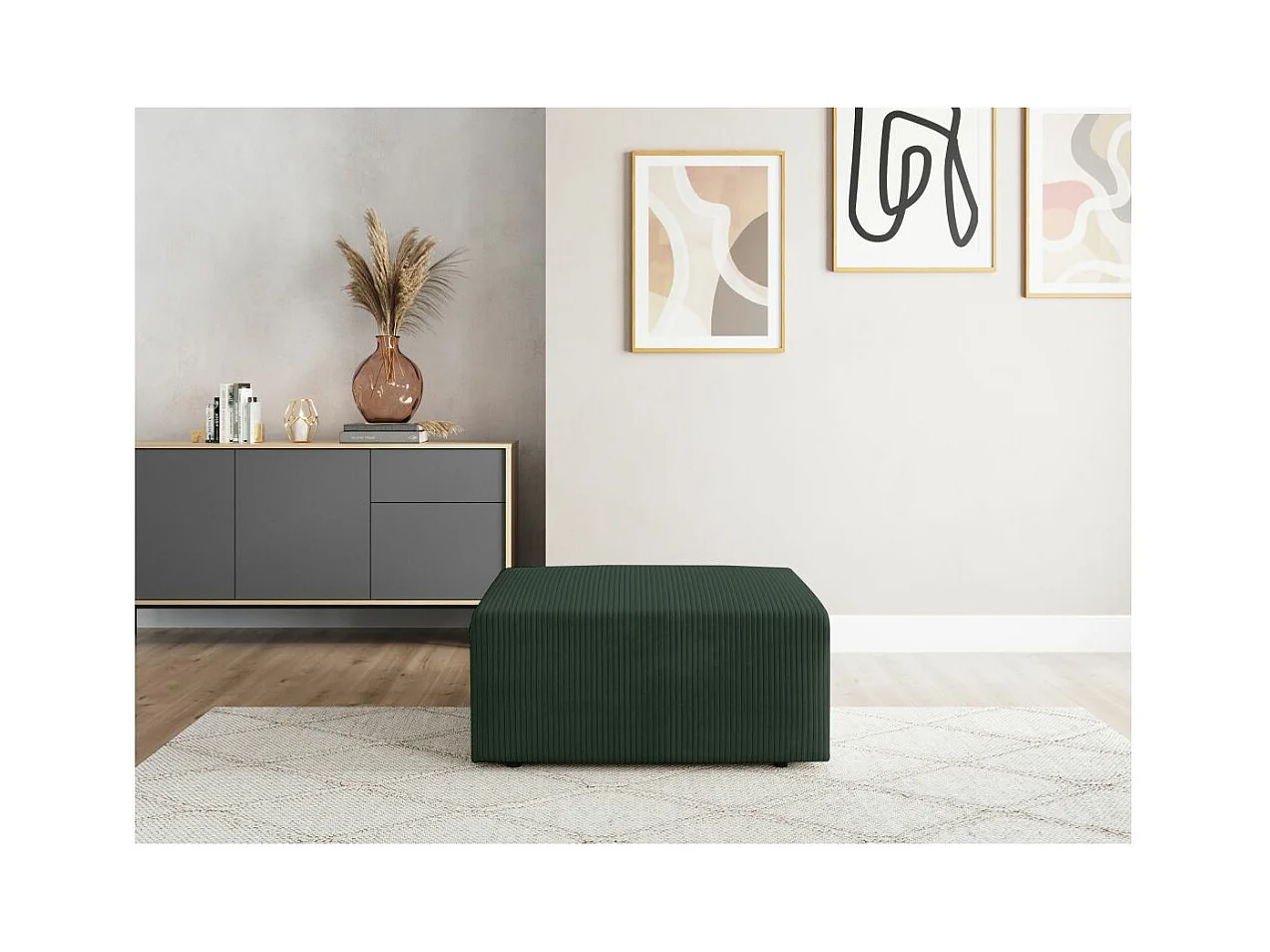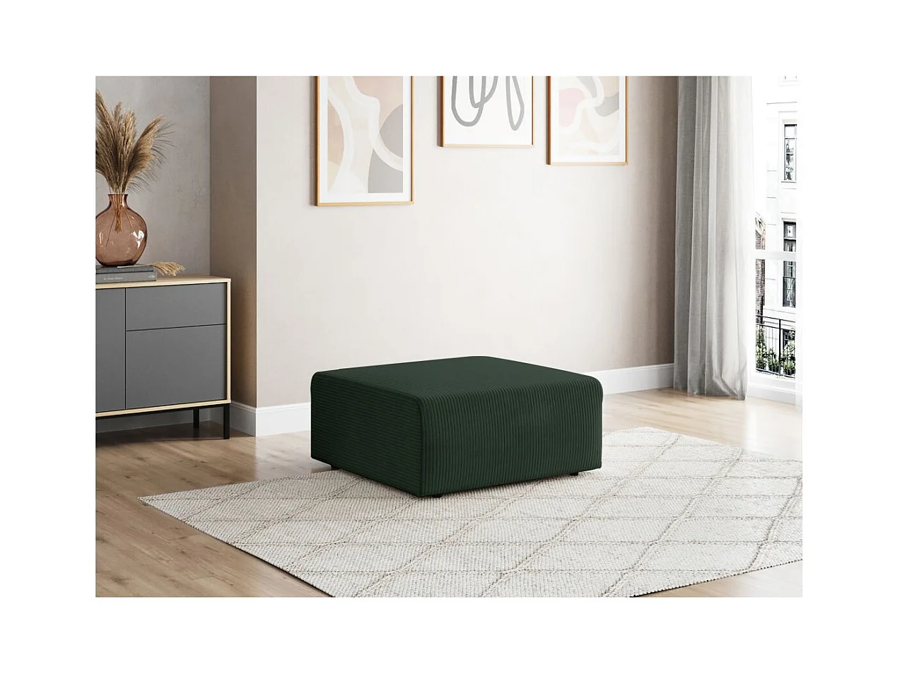 Pouf ROMANE en velours côtelé - Vert foncé