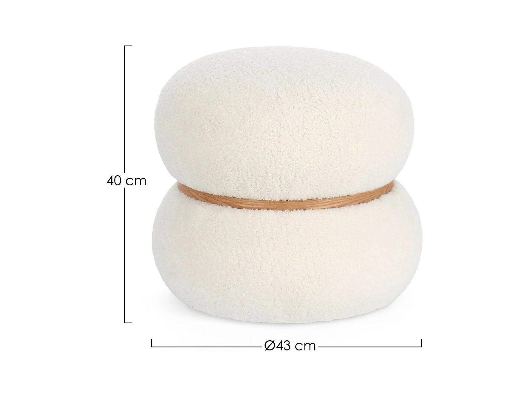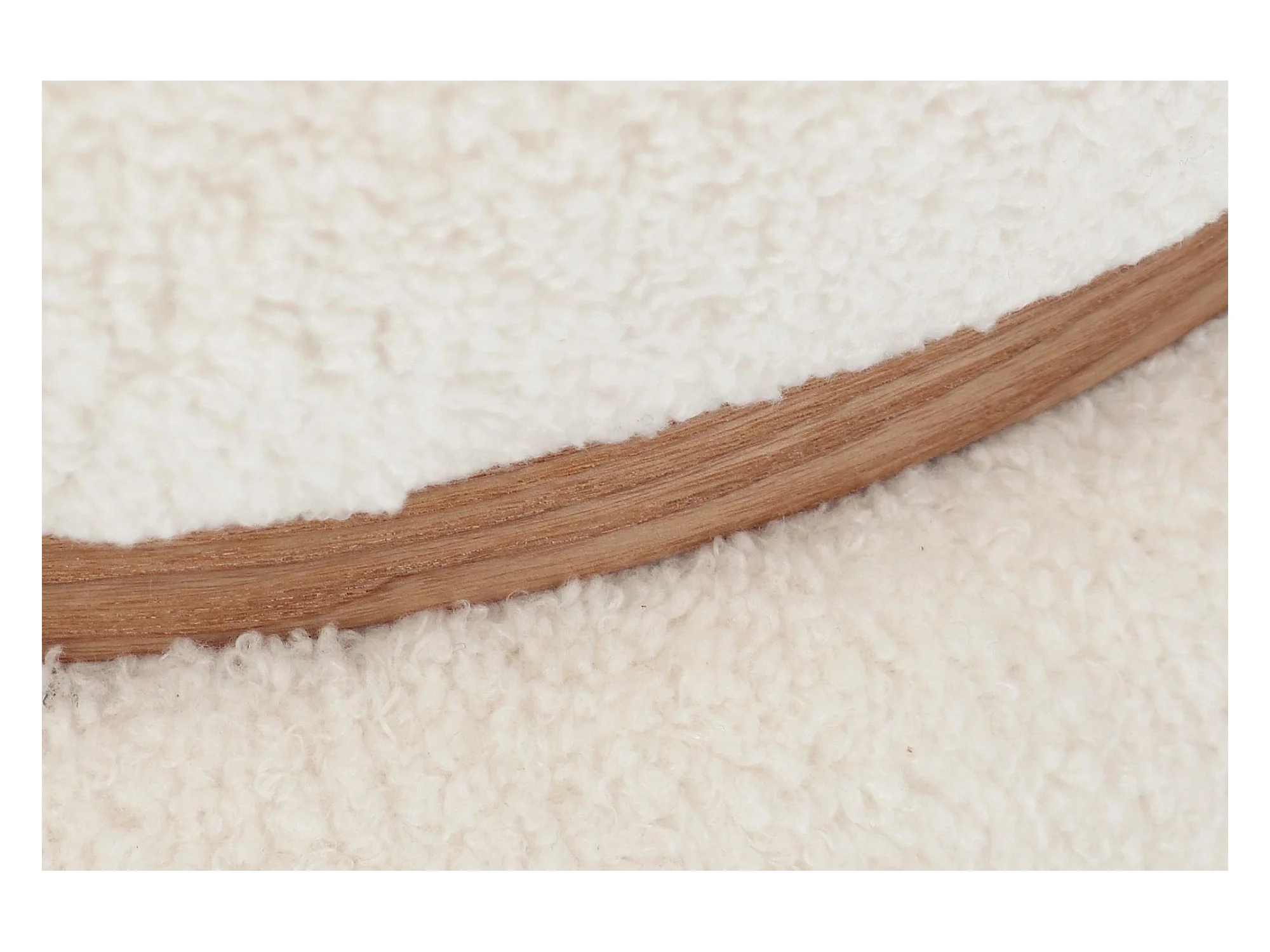 Pouf ovale en tissu blanc effet laine et anneau en bois - BOSTON