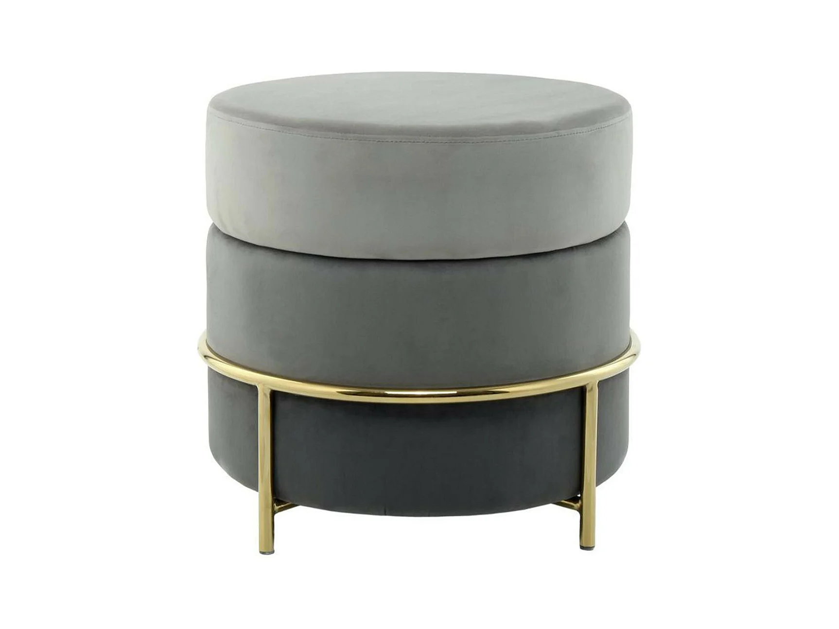 Pouf rond velours gris et pied métal doré mat Kila 39cm