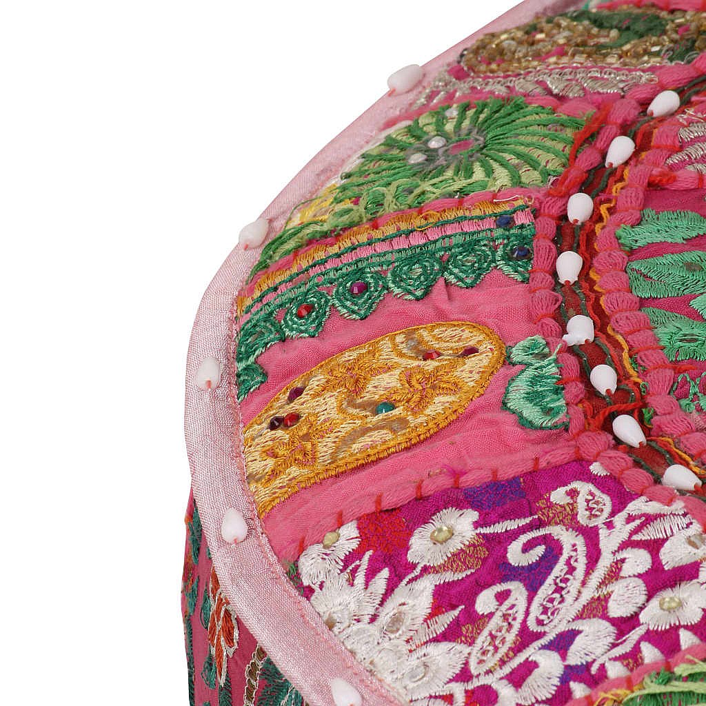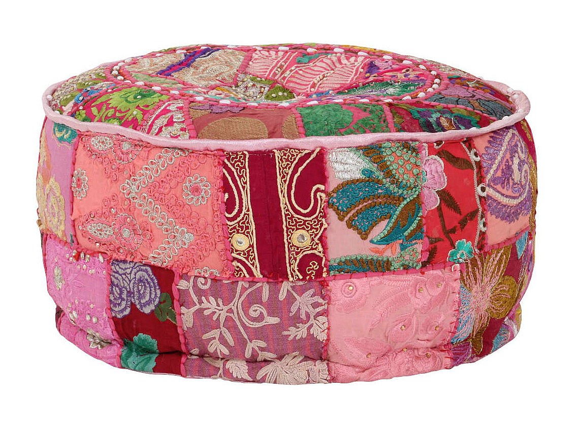 Pouf rond en coton en patchwork fait à la main 40 x 20 cm Rose