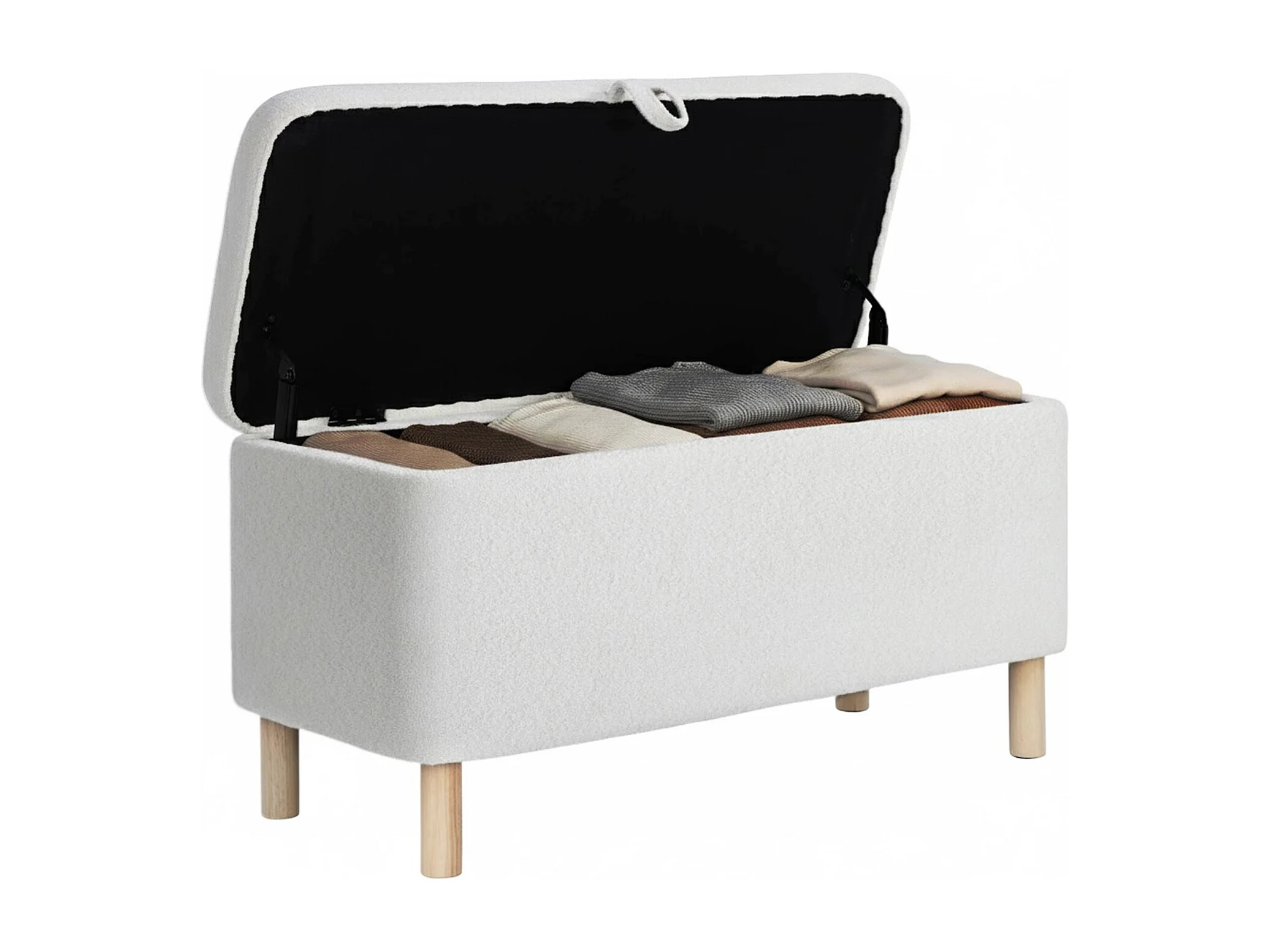 Banc coffre rembourré en bouclette coloris Blanc - Longueur 110 x Profondeur 46 x Hauteur 40,5 cm