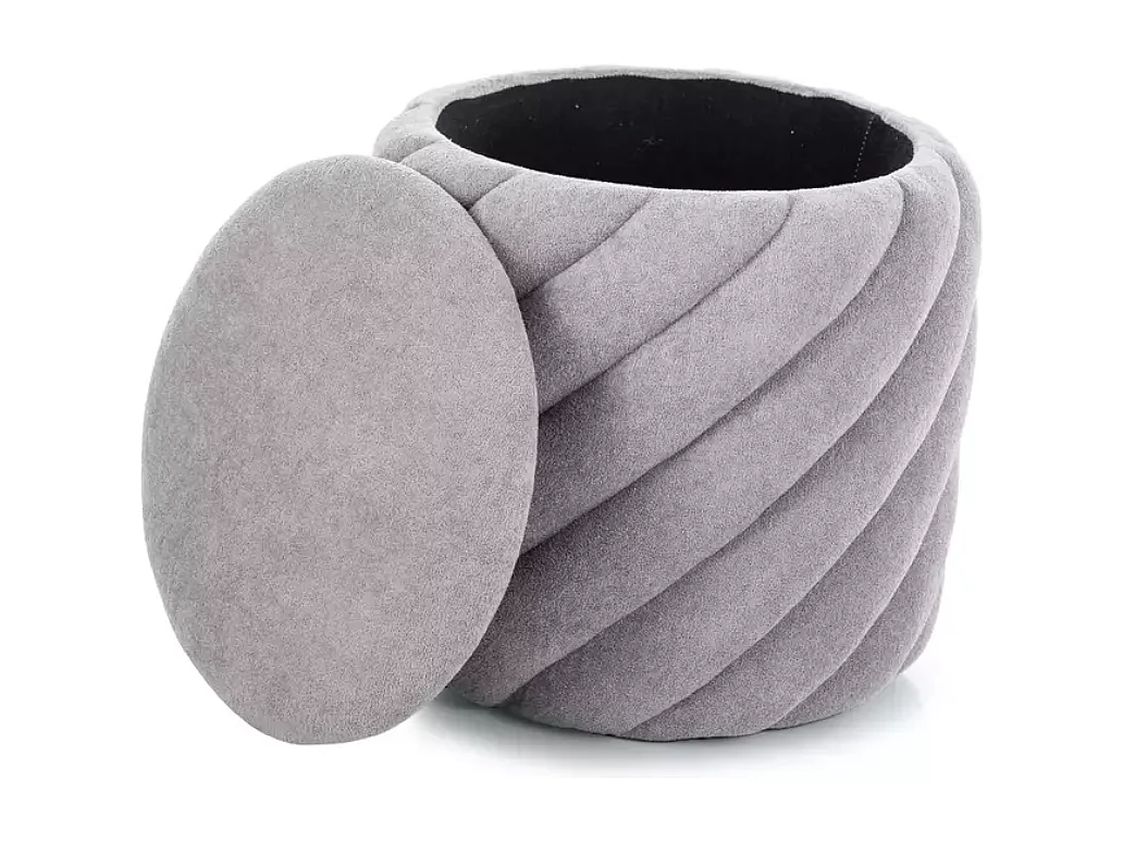 Pouf rond en tissu gris avec rangement intérieur et effet spirale SORARO