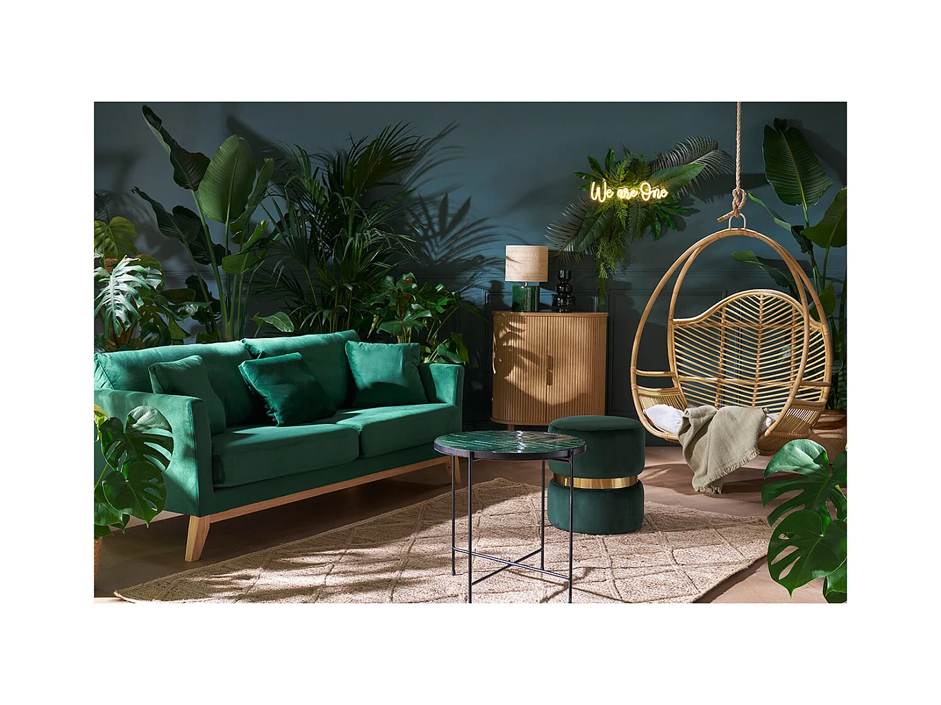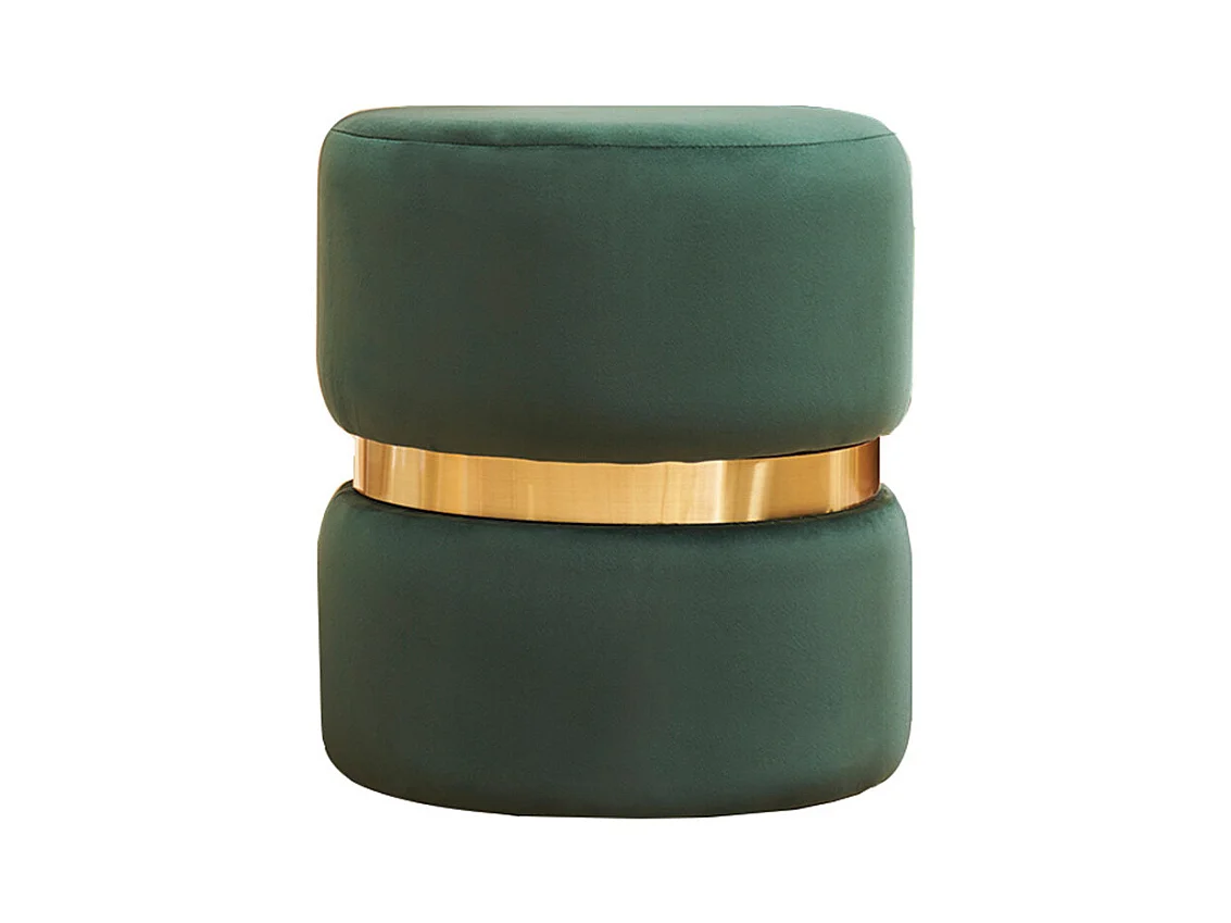 Pouf rond en velours vert foncé et métal doré D40 cm JOY