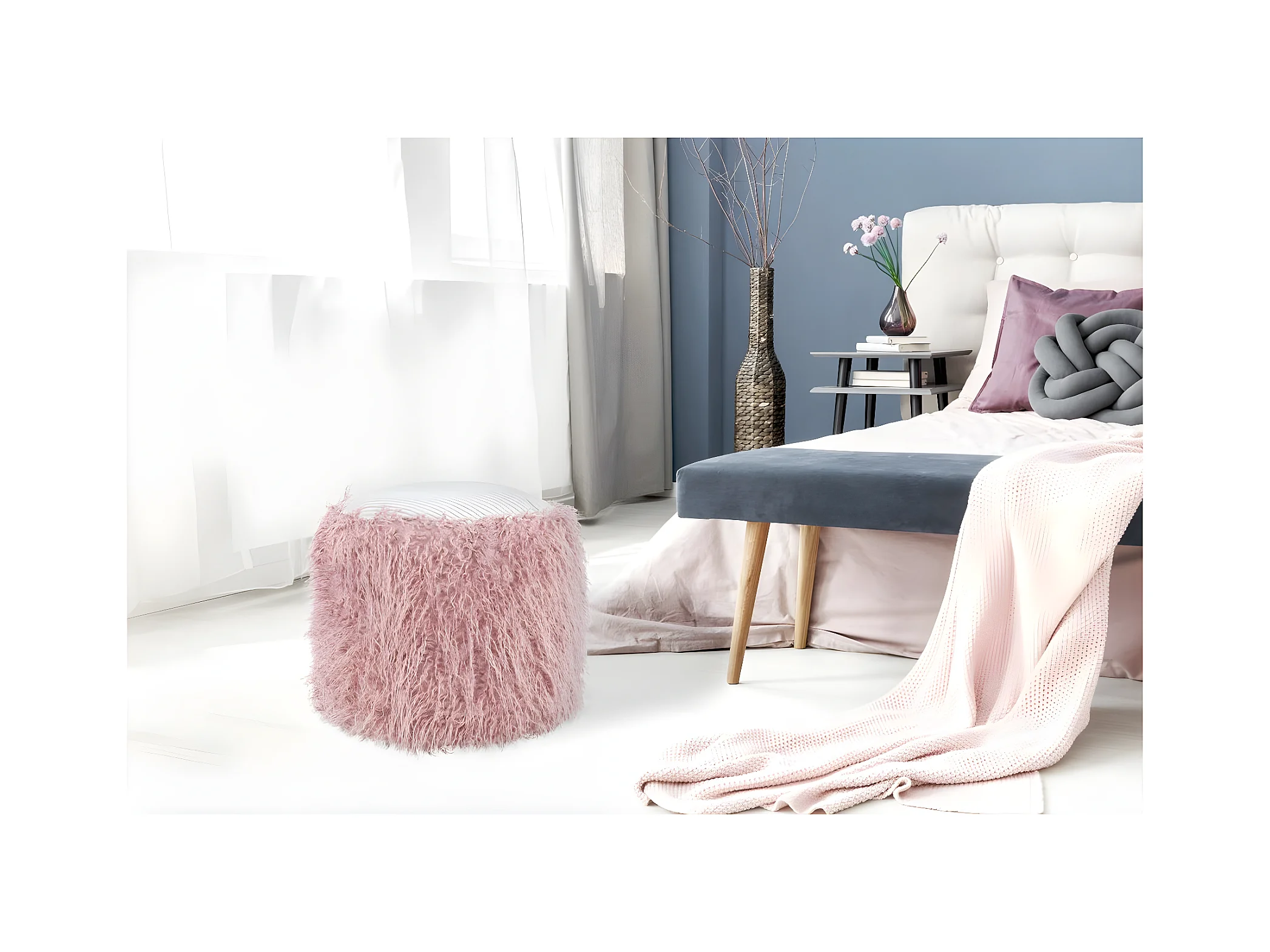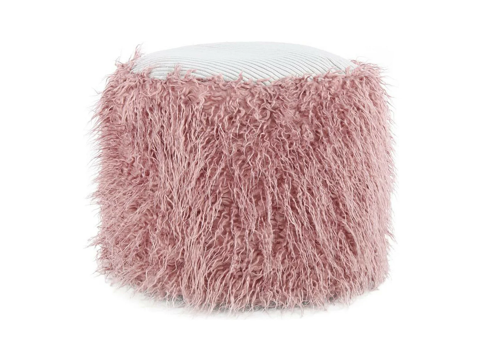 Pouf Rond Imitation Fourrure "Bobtail" 45cm Rose