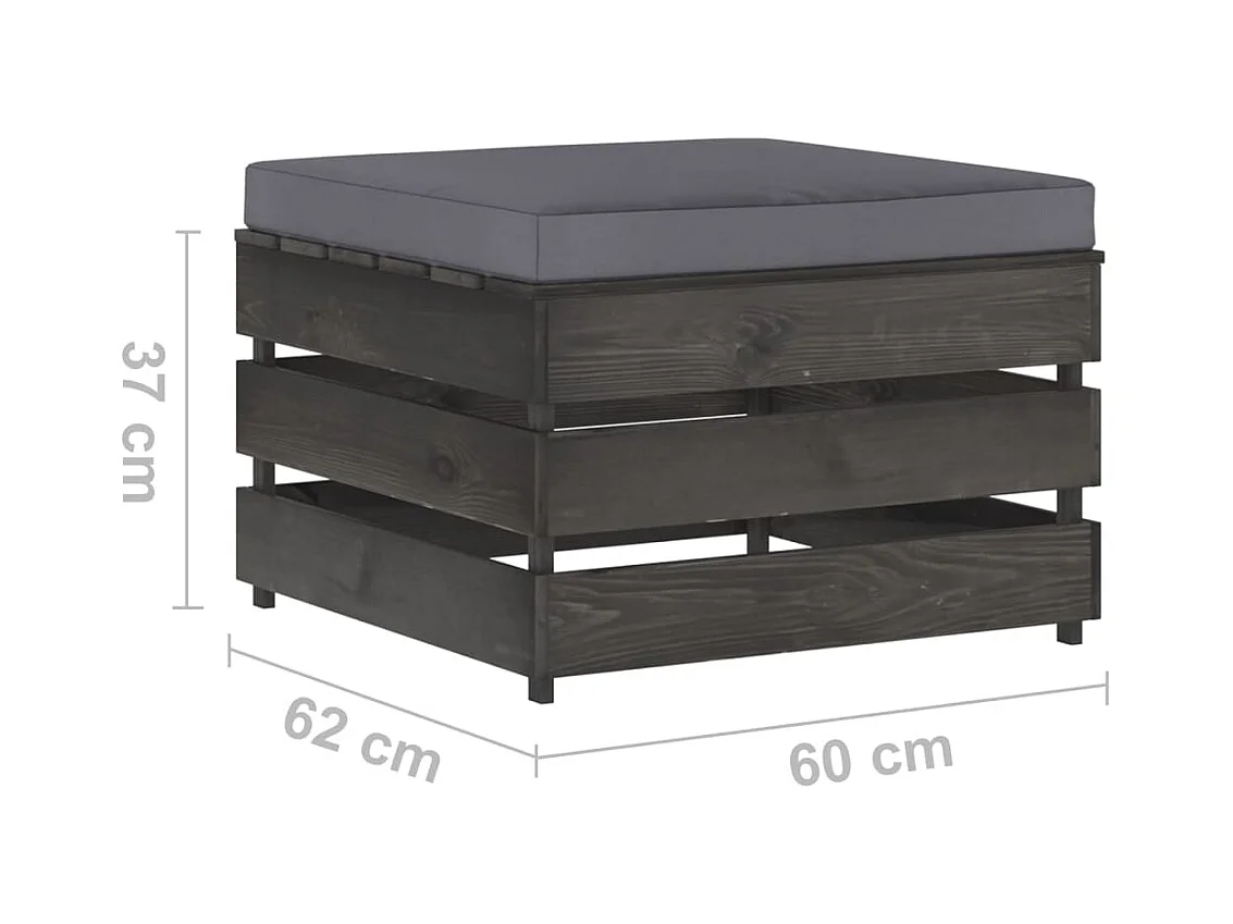 Pouf sectionnel avec coussin Bois imprégné de gris