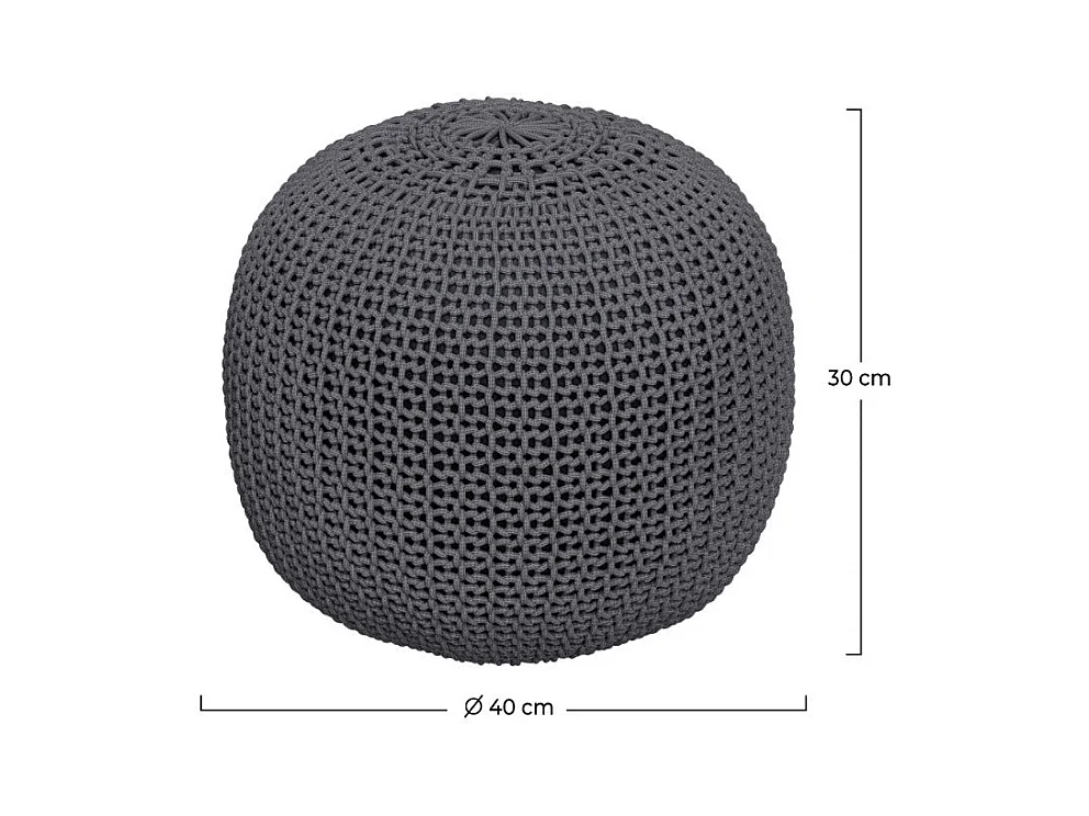 Pouf tricot rond en coton gris foncé D40 cm - Elisa