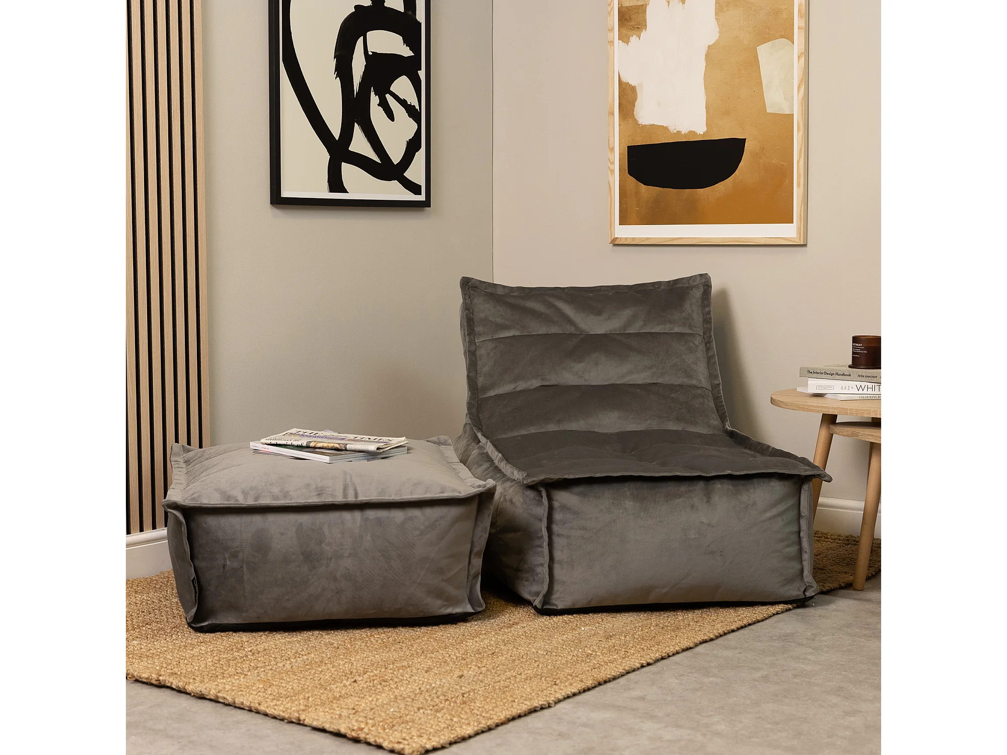 Pouf velours avec large repose-pieds gris anthracite - DOLCE