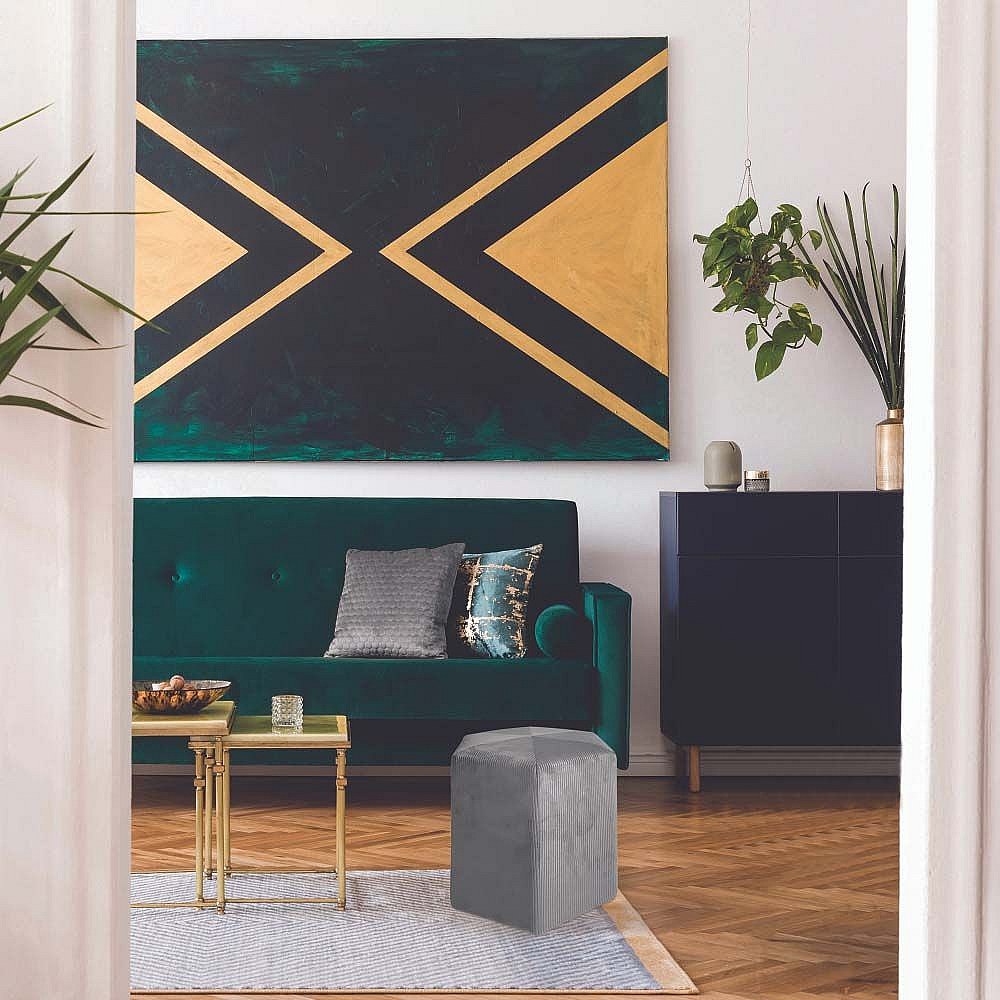 Pouf Velours Cotele 35cm Giulia Gris Fonce Gris