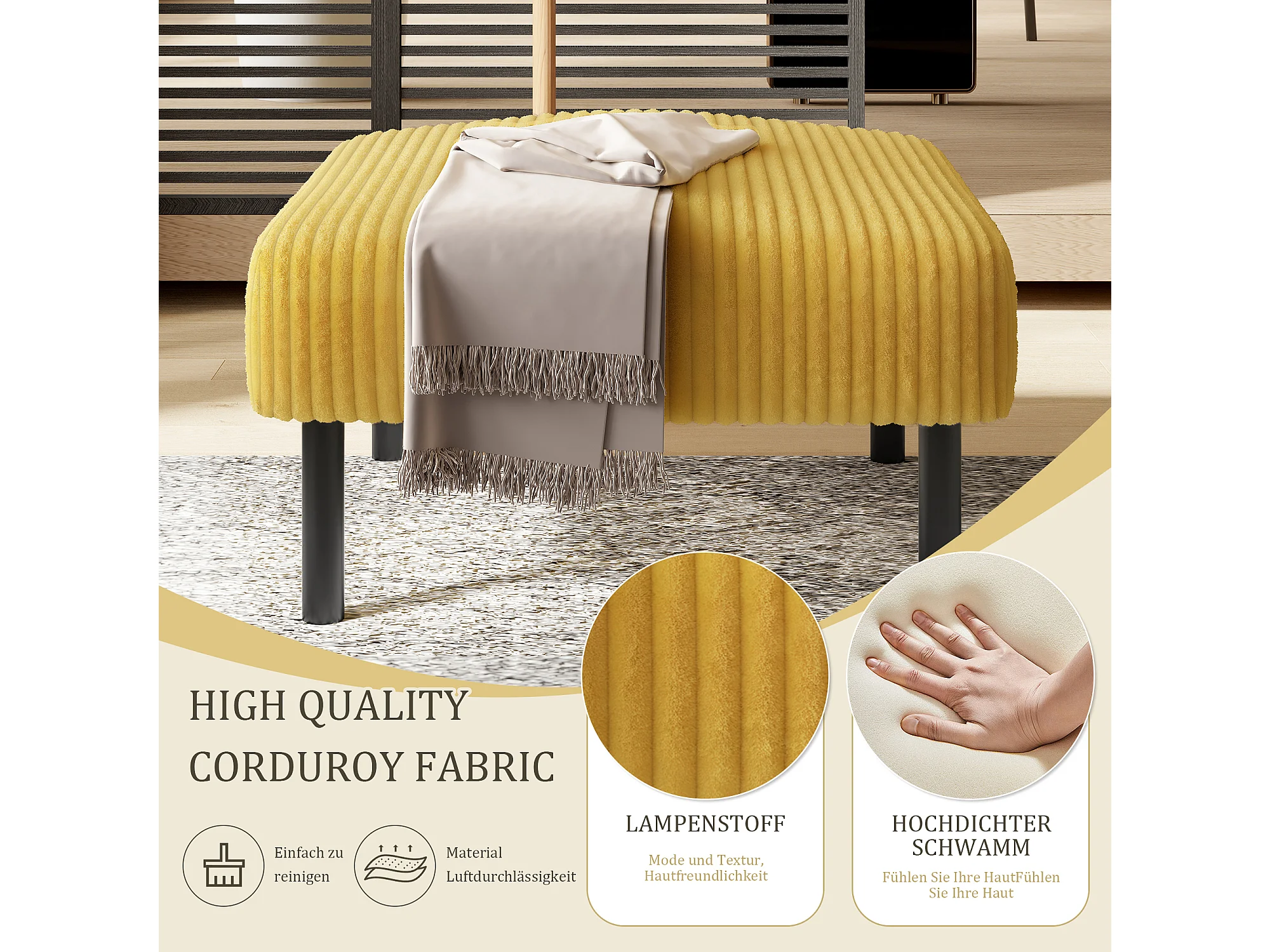 Pouf velours côtelé beige à assise haute résilience - Pouf multifonction - Idéal pour salon cosy ou chambre