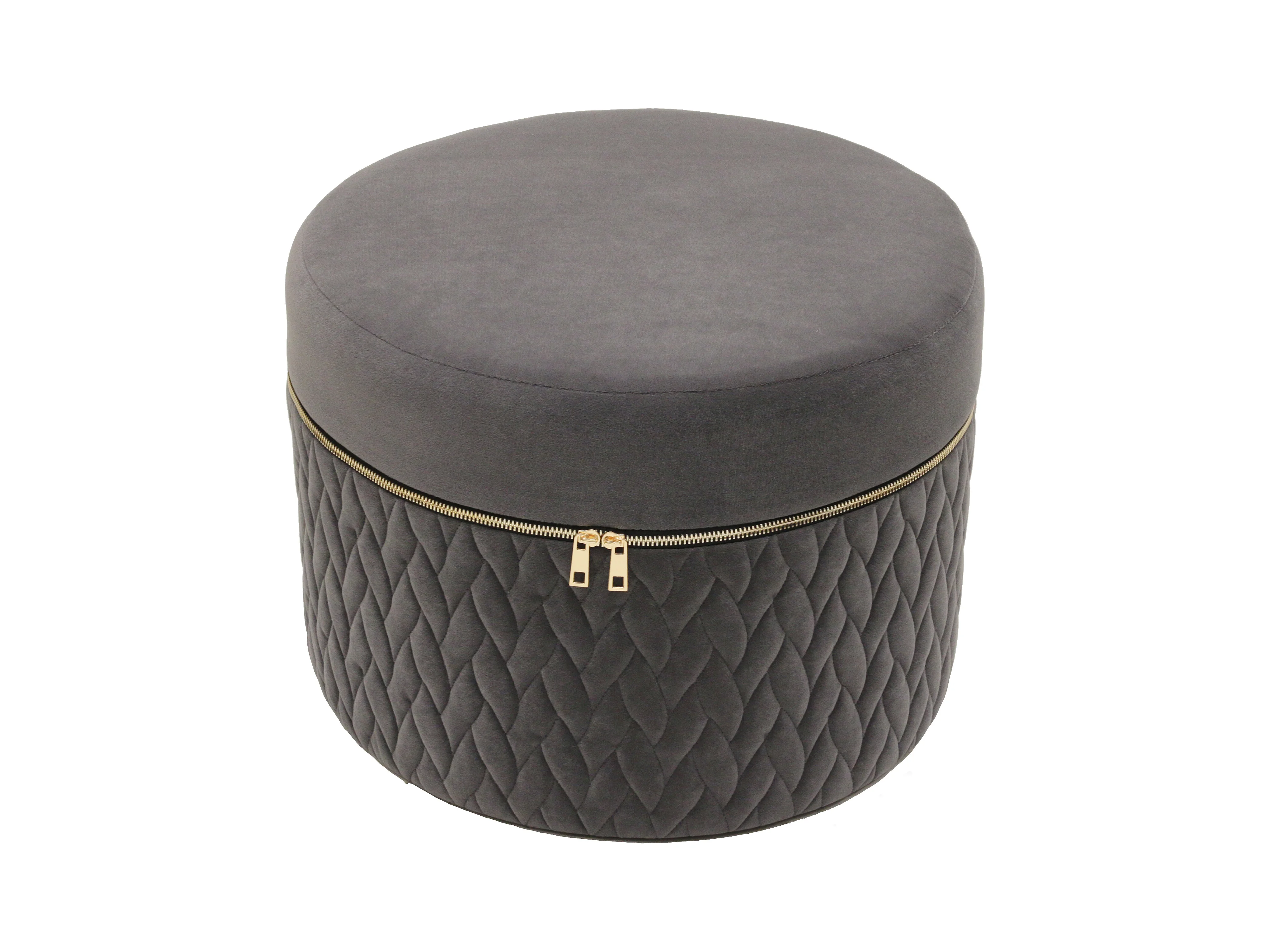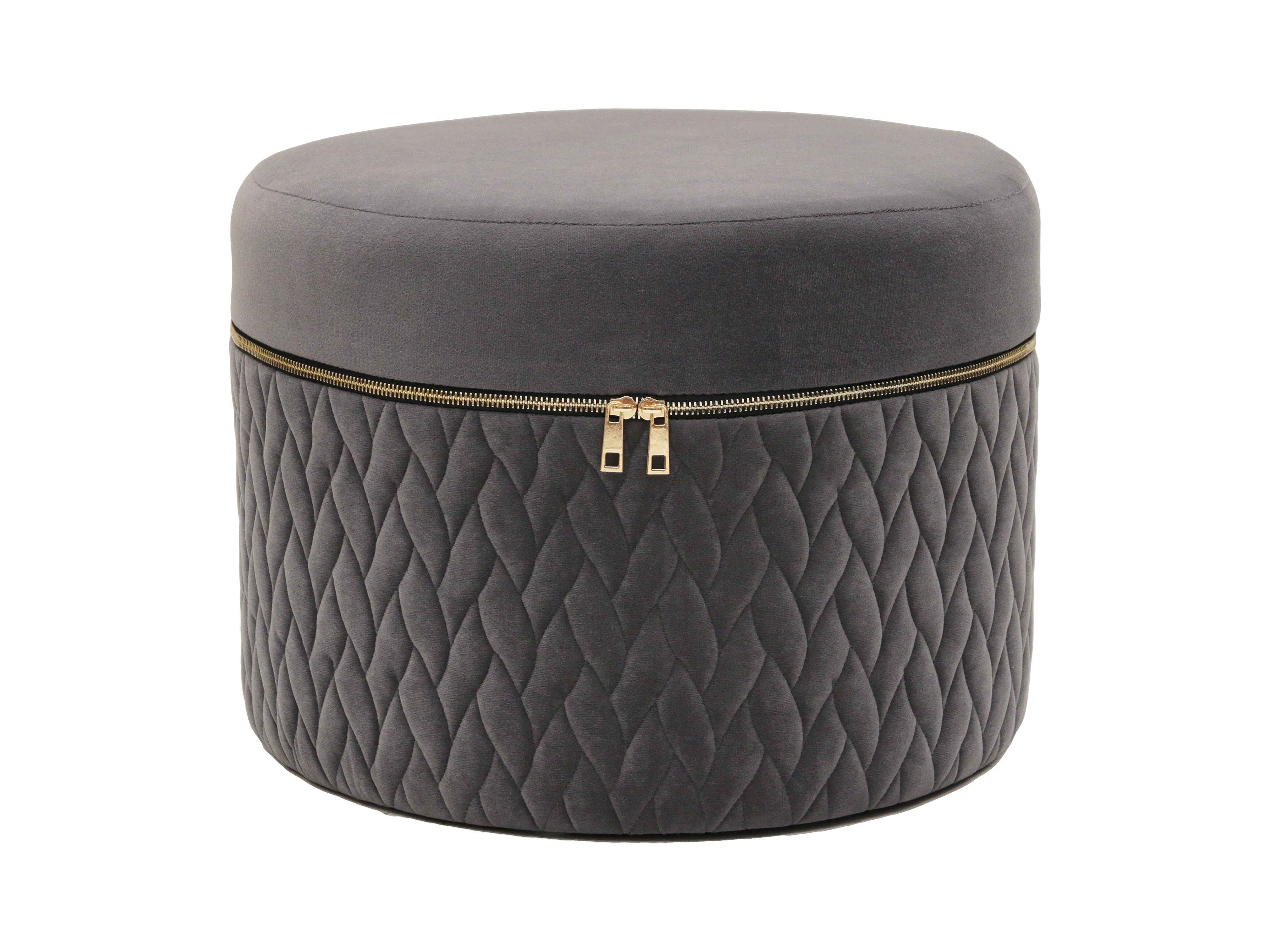 Pouf Velours Fermeture Eclair Gris