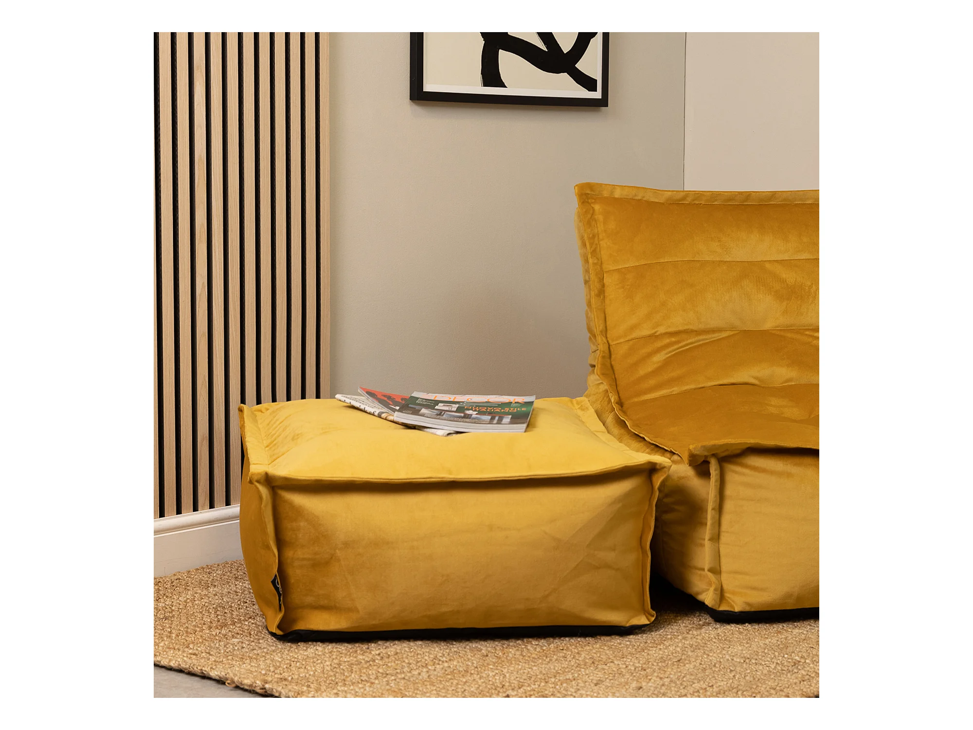 Pouf velours large repose-pieds carré jaune ocre - VITA