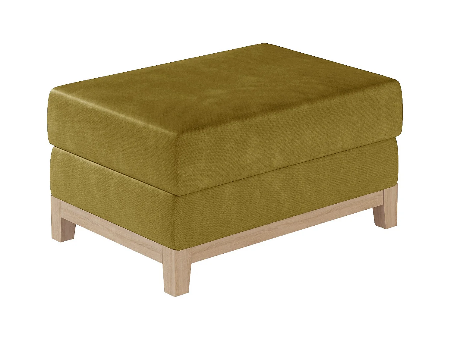 Pouf velours moutarde et pieds en bois de hêtre Saline 100cm
