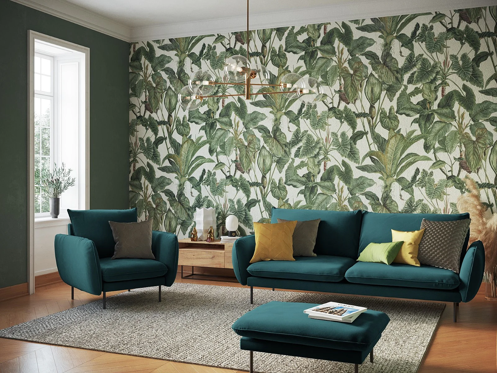 Cosmopolitan Design - Pouf "Vienna" en velours pétrole - 100x80x43cm