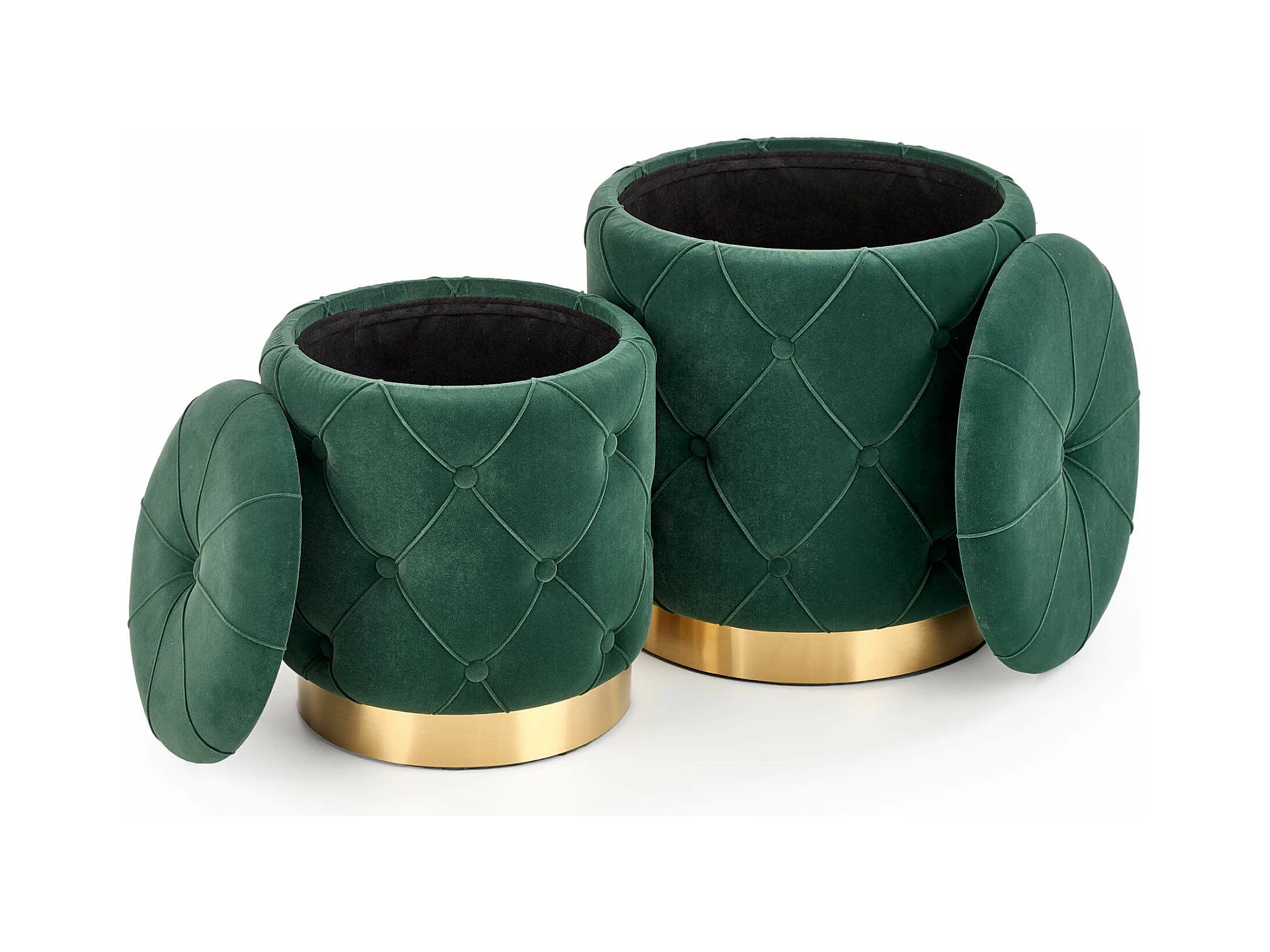 Poufs gigognes en velours vert foncé avec base en acier doré ECHO