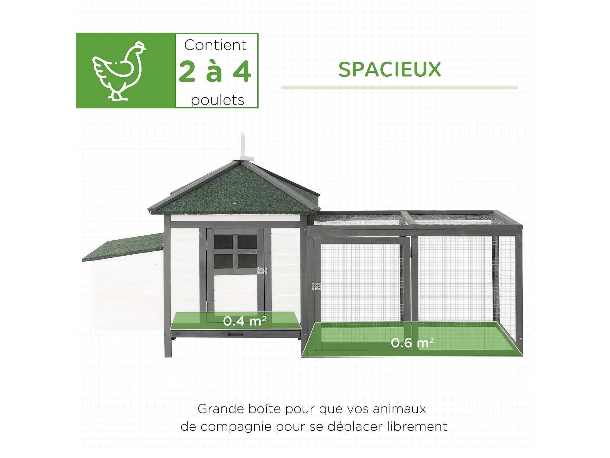 Poulailler cottage multi-équipement perchoir rampe pondoir enclos tiroir à déjection 196L x 76l x 97H cm bois massif pin gris blanc