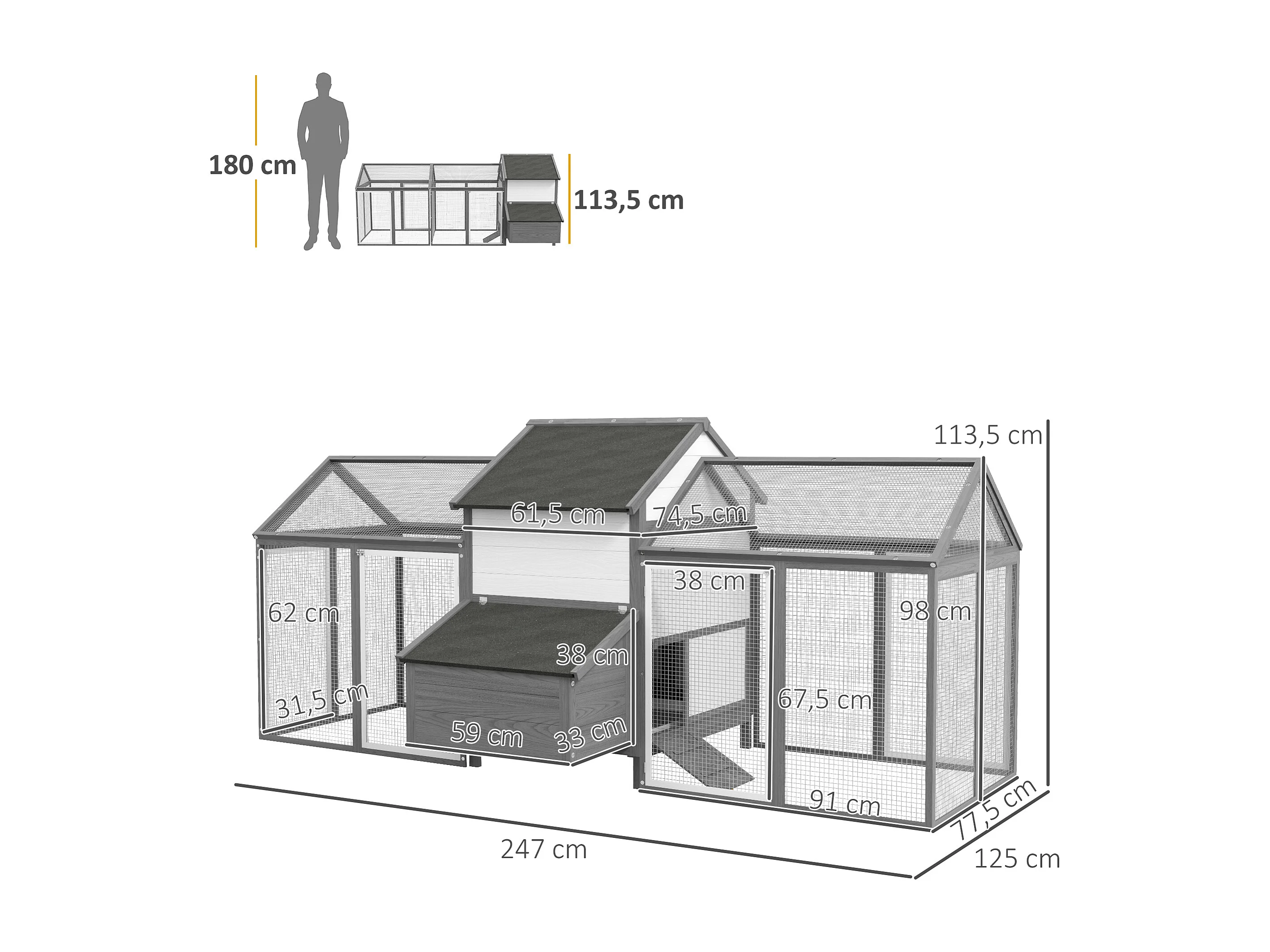 Poulailler en bois 2 enclos modulables niche pondoir gris