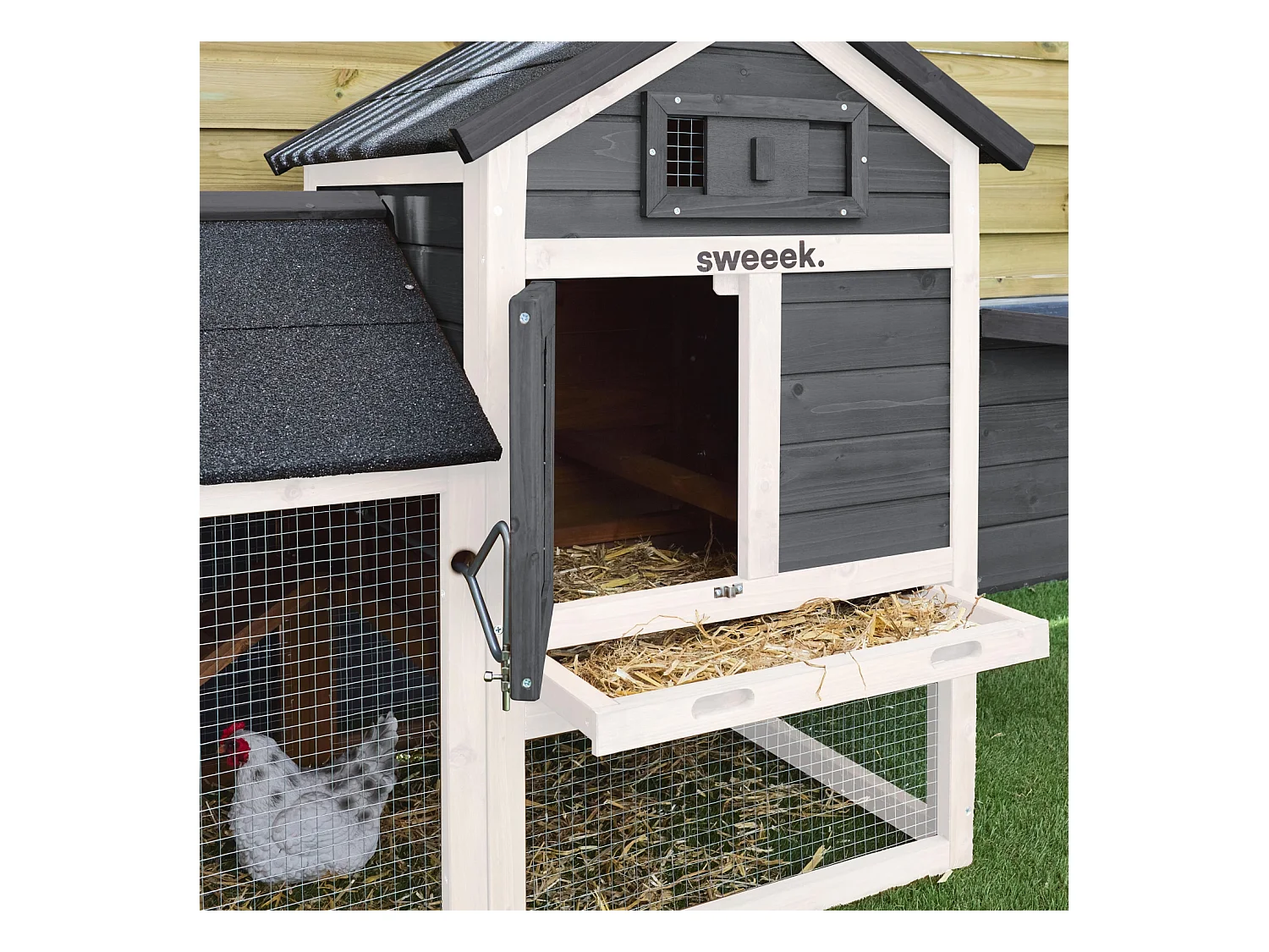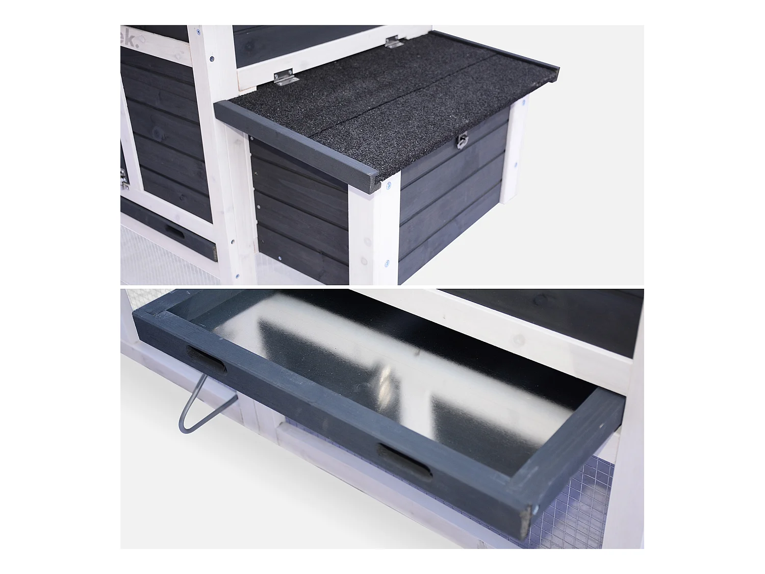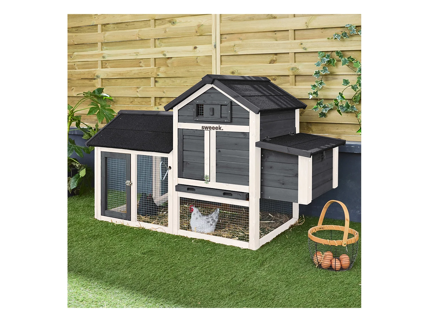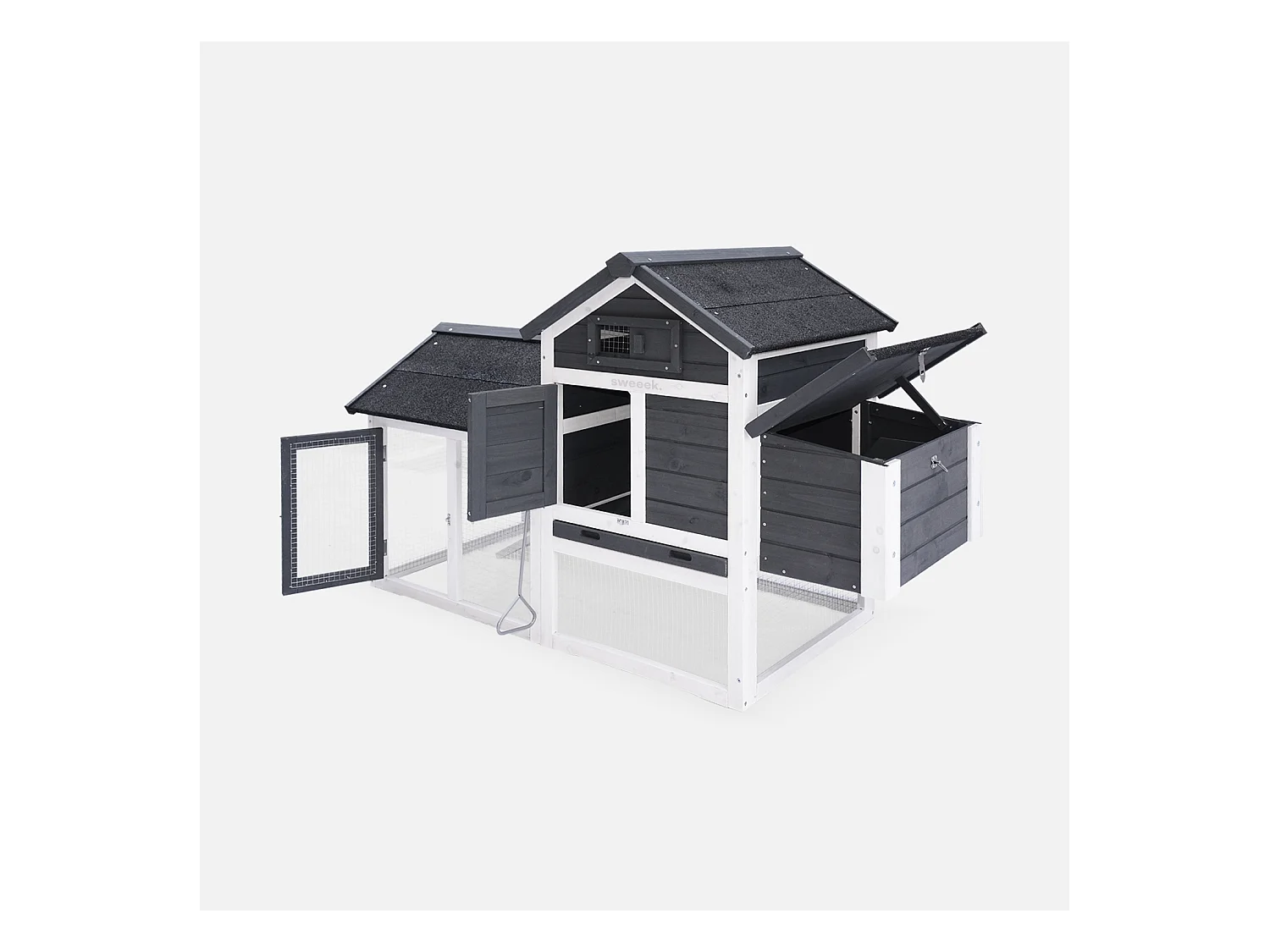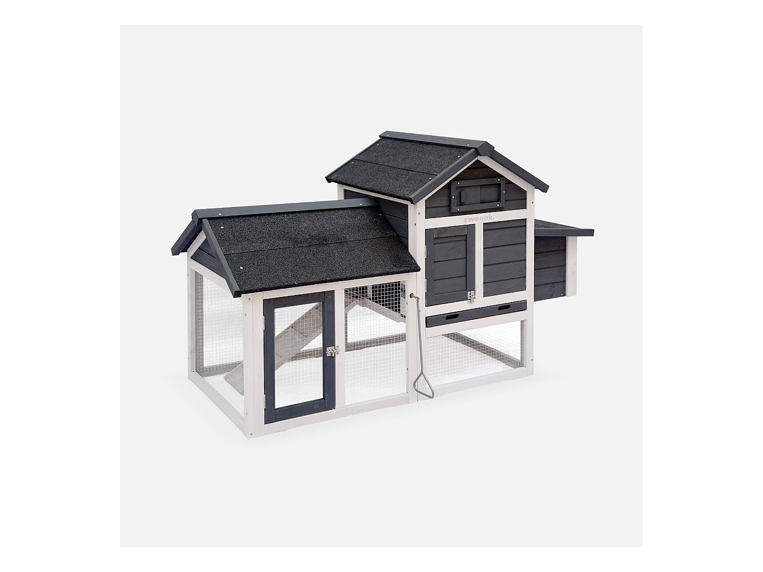 Poulailler en bois anthracite GALINETTE. 3 poules. cage à poule avec enclos
