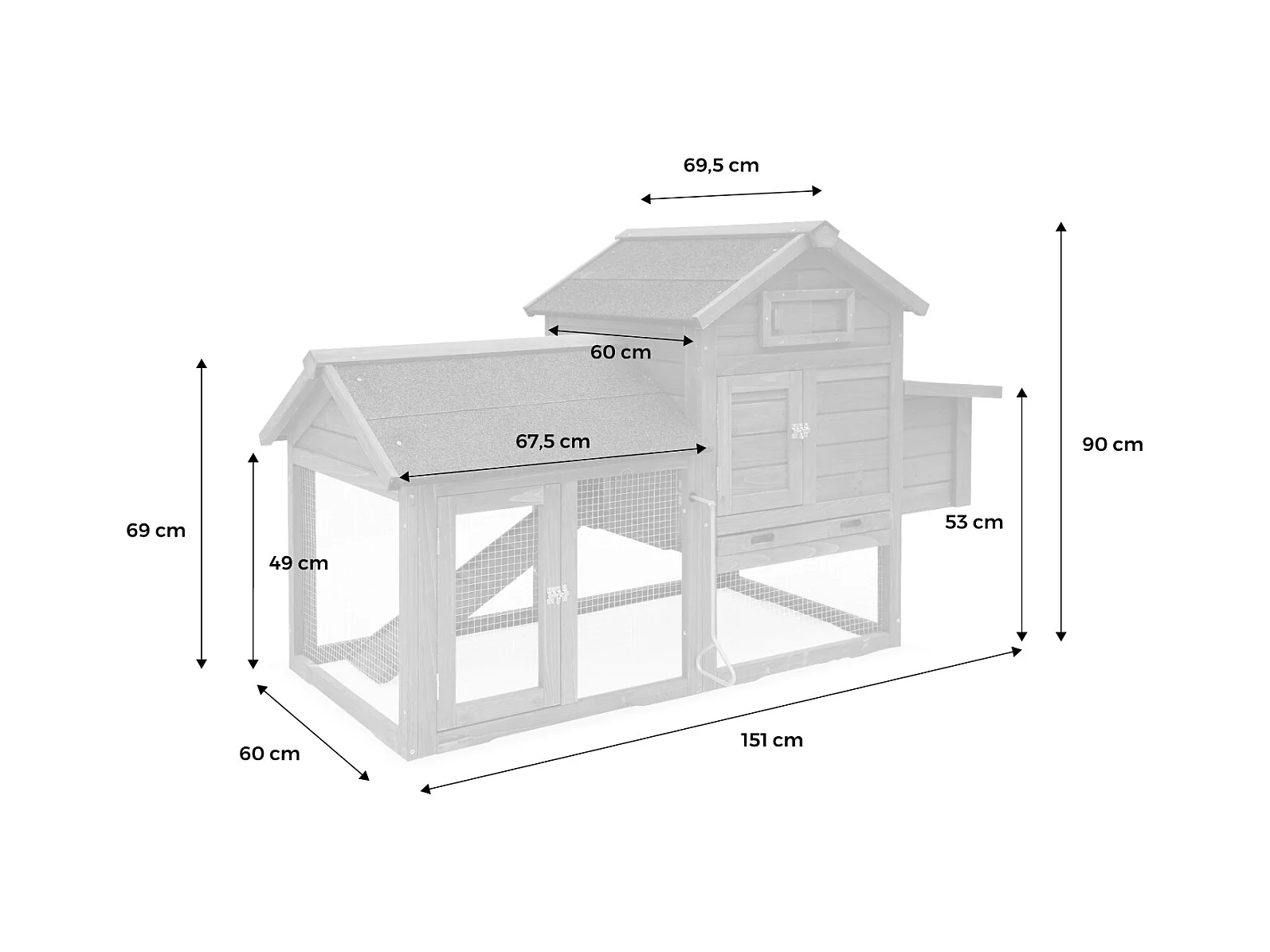 Poulailler cottage cage à poules sur pied dim. 310L x 149l x 149H cm multi-équipement bois sapin gris