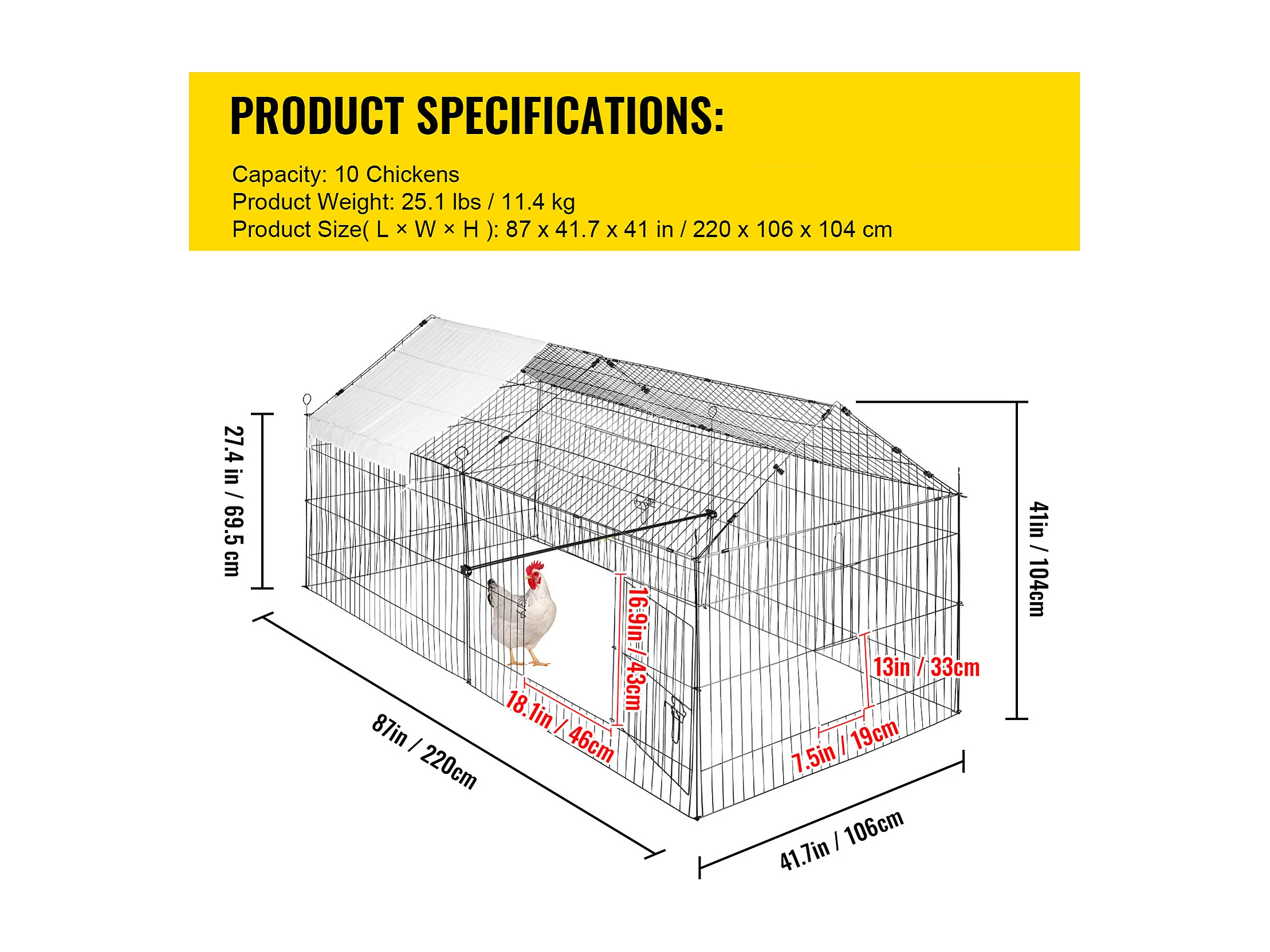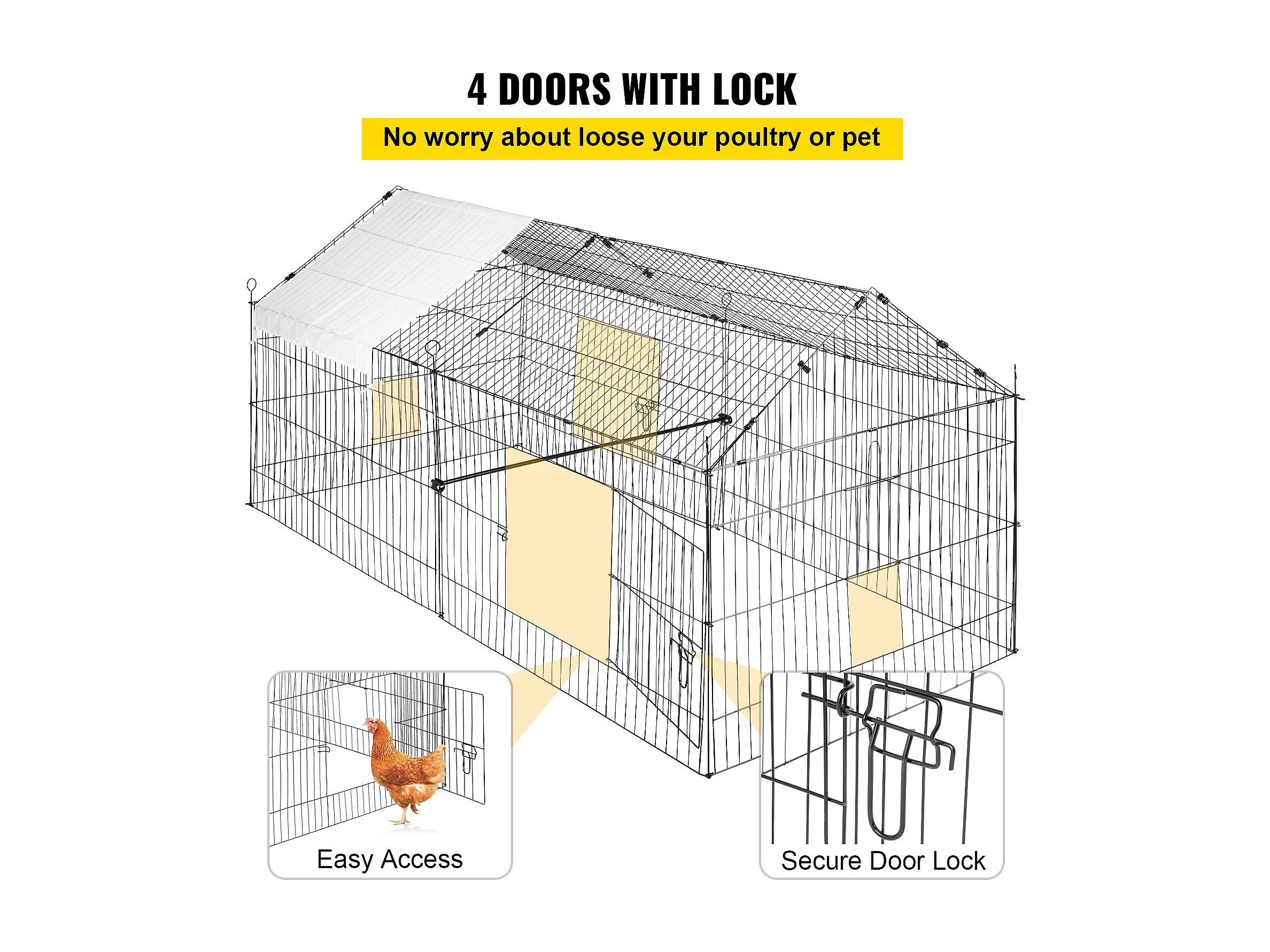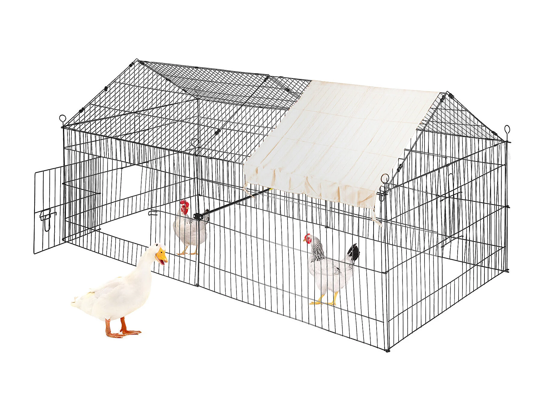 Poulailler, SucceBuy Poulailler 220 × 106 × 104 cm, Cage en Métal, Parc pour Petits Animaux