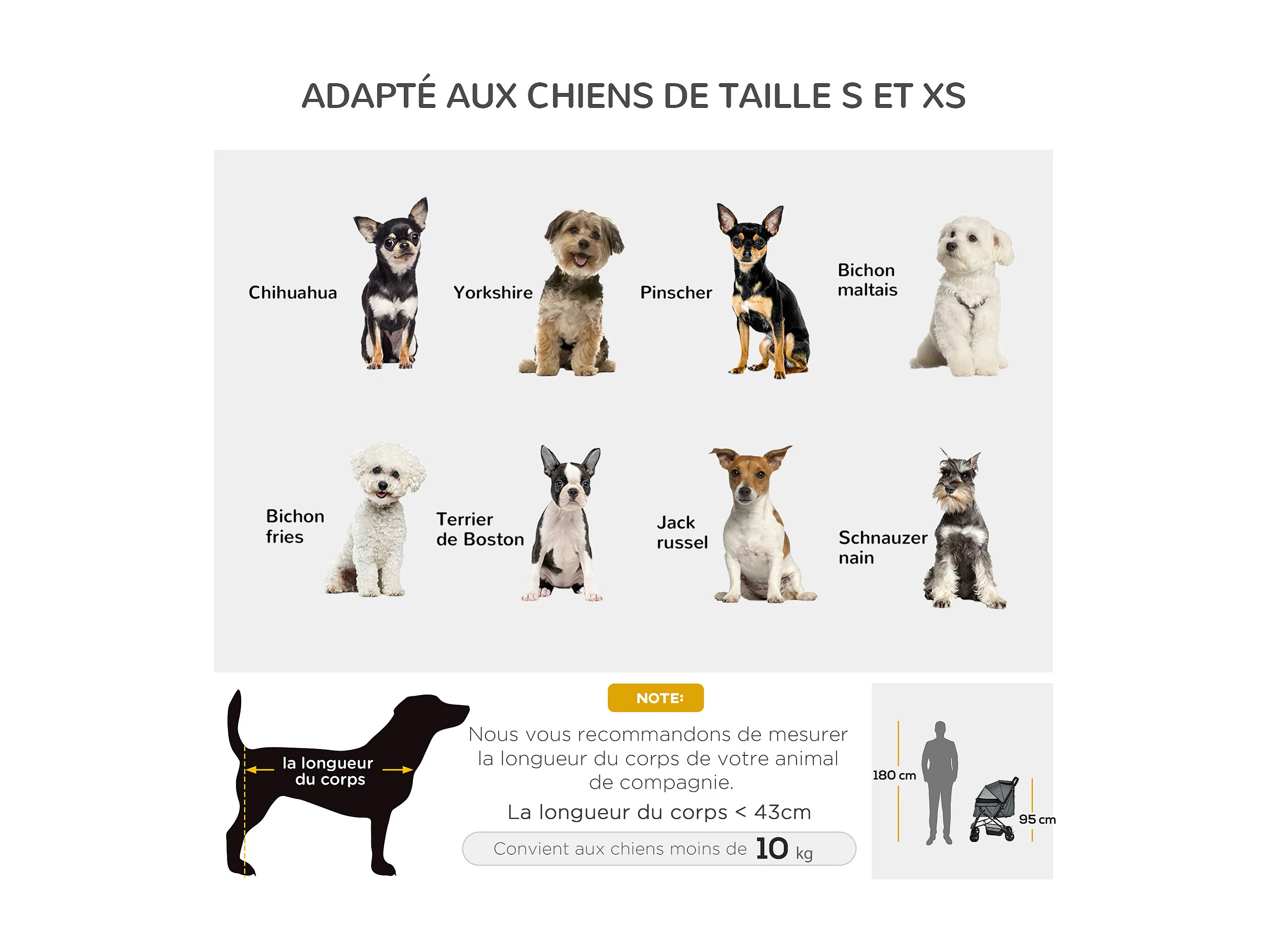 Poussette buggy pliable chien chat panier et sac de rangement attaches sécurité housse réglable poignée réglable acier Oxford gris