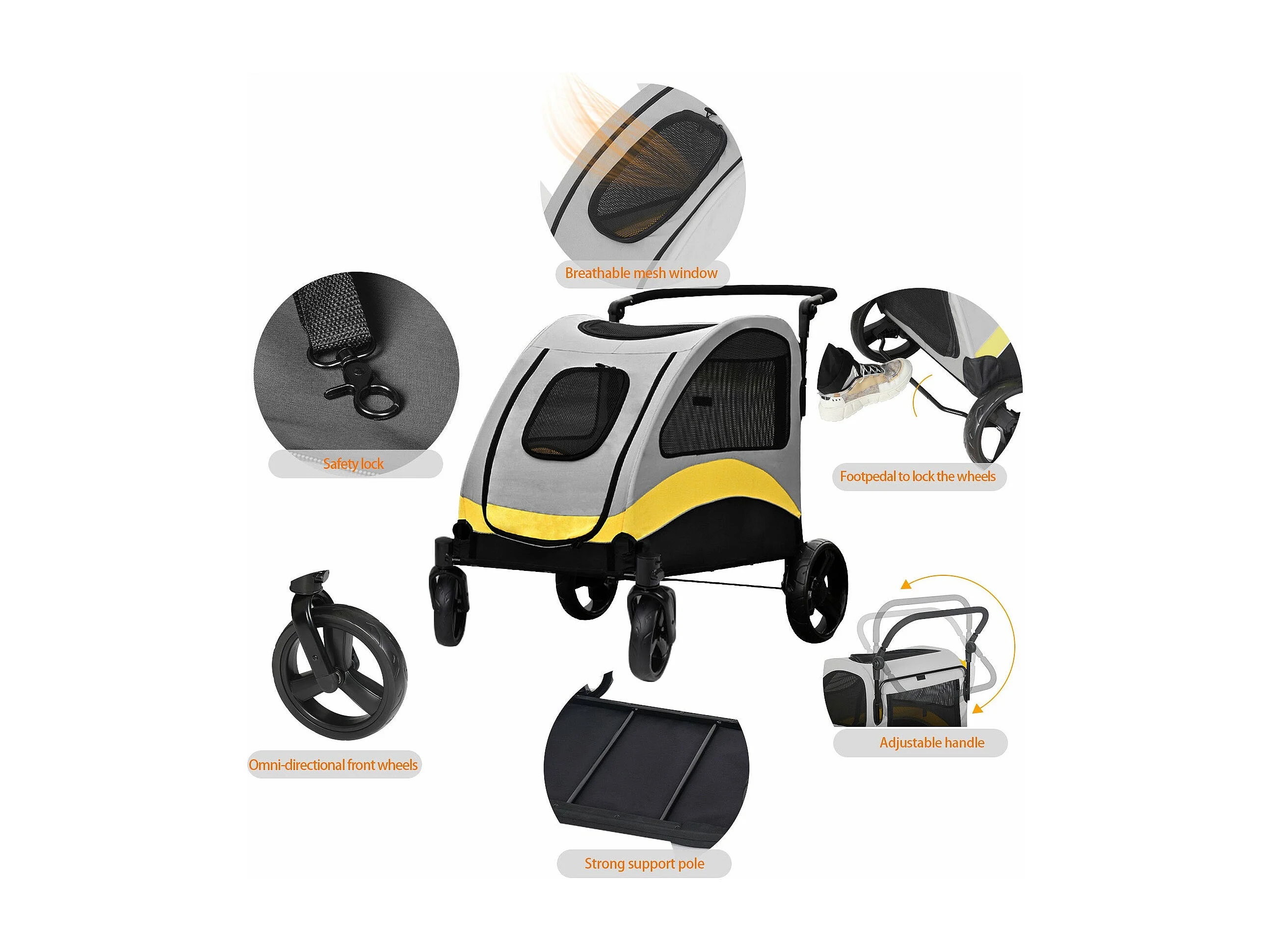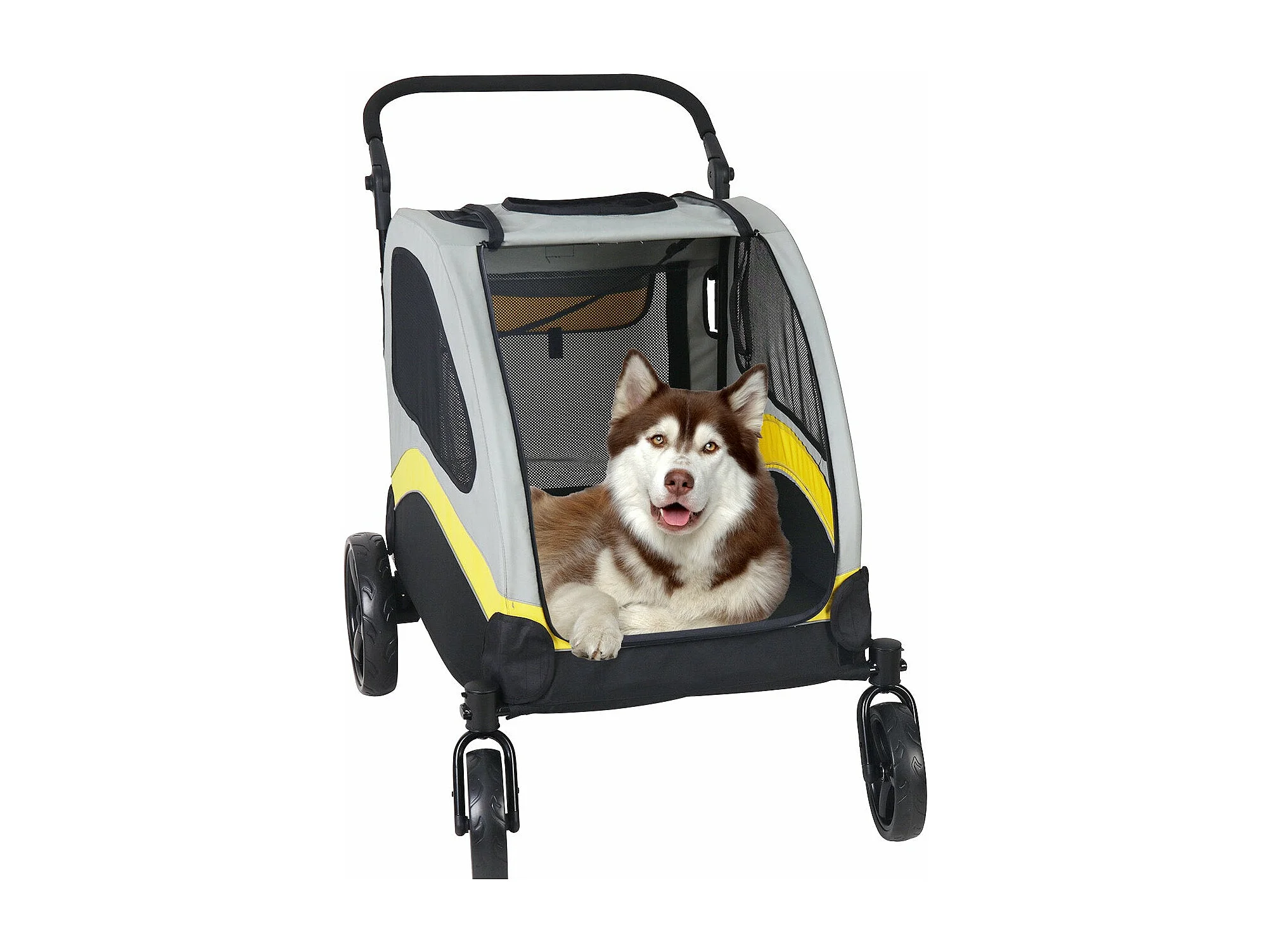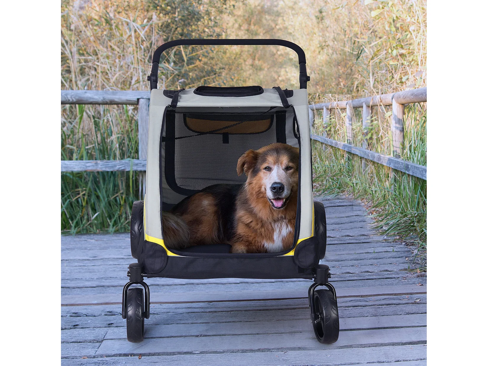 Poussette grand chien pliable chariot à roulettes pour animaux 4 roues pour chiens moins de 65kg 107x74x112cm