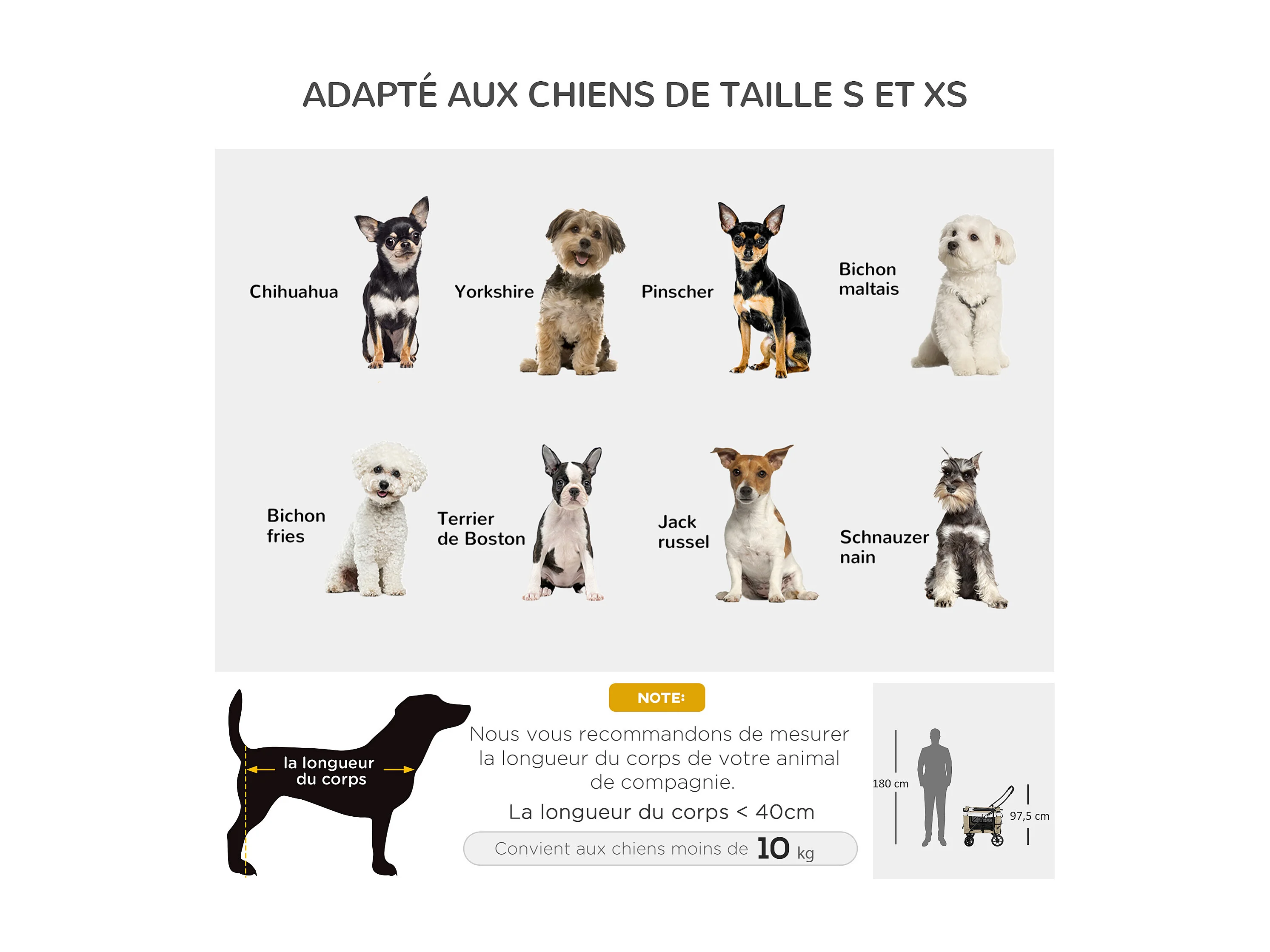 Poussette buggy pour chiens 75L x 46l x 94H cm pliable imperméable tissu 600D Oxford 4 roues noir