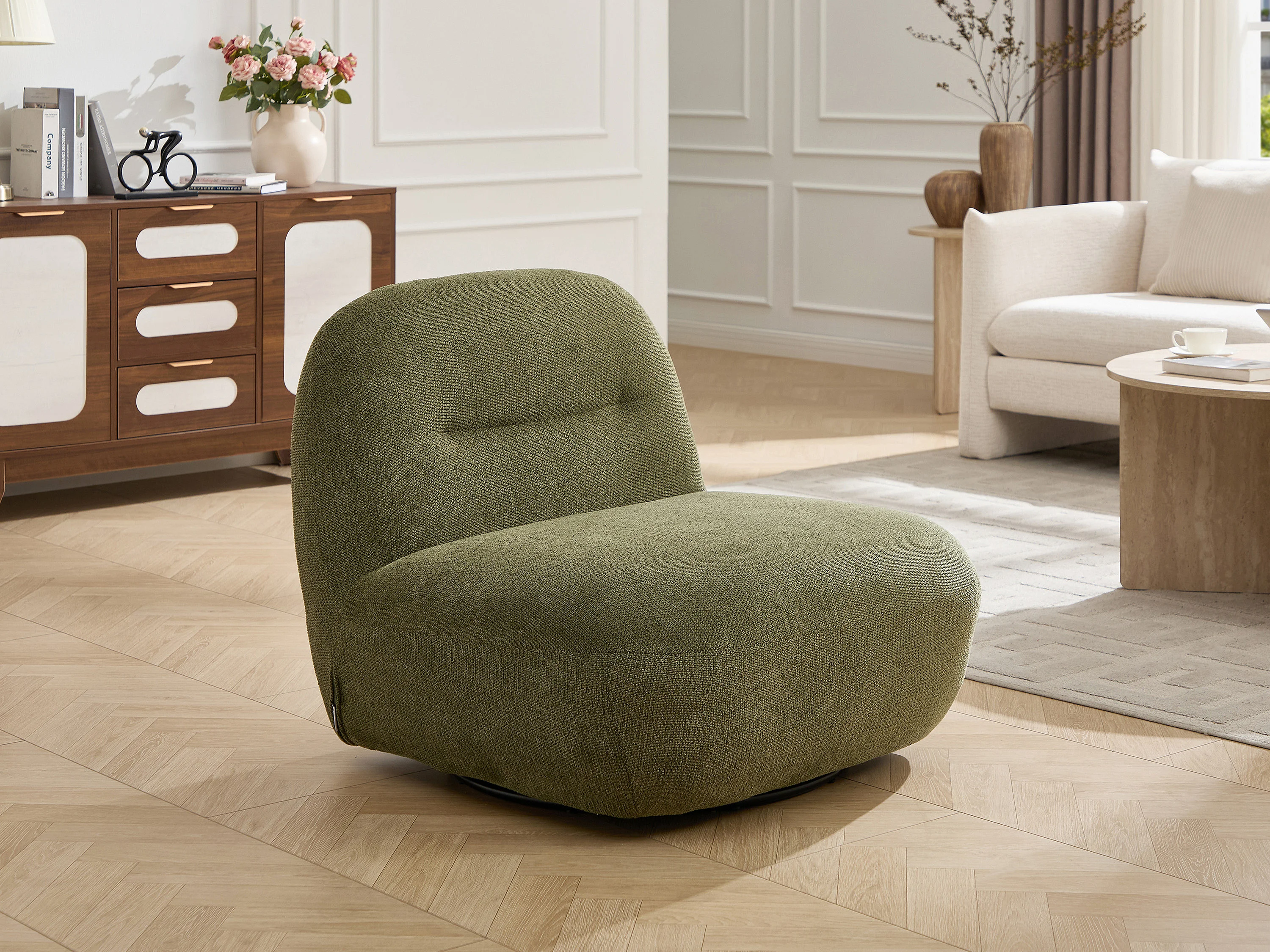 Fauteuil pivotant en tissu texturé vert POZETI