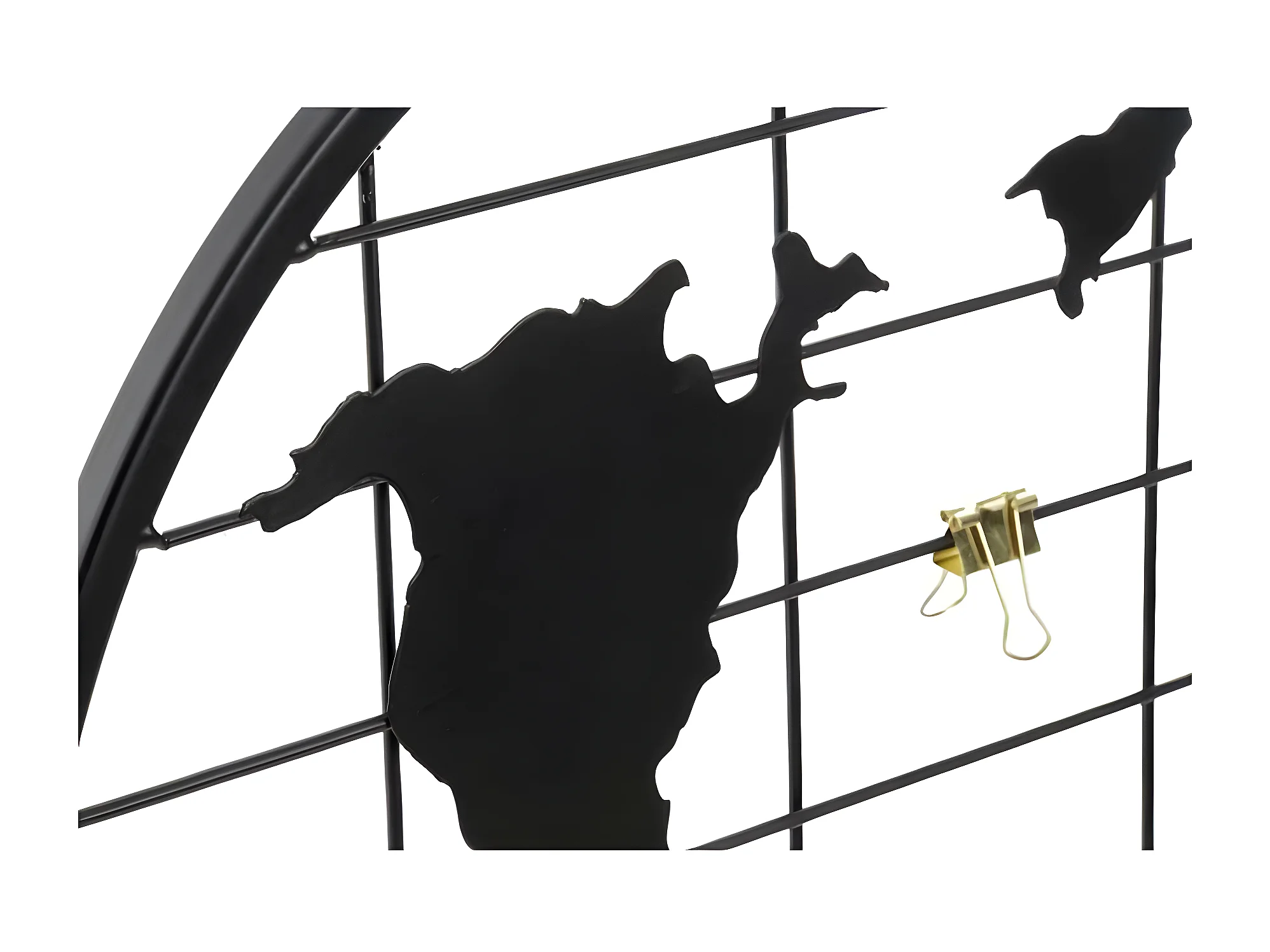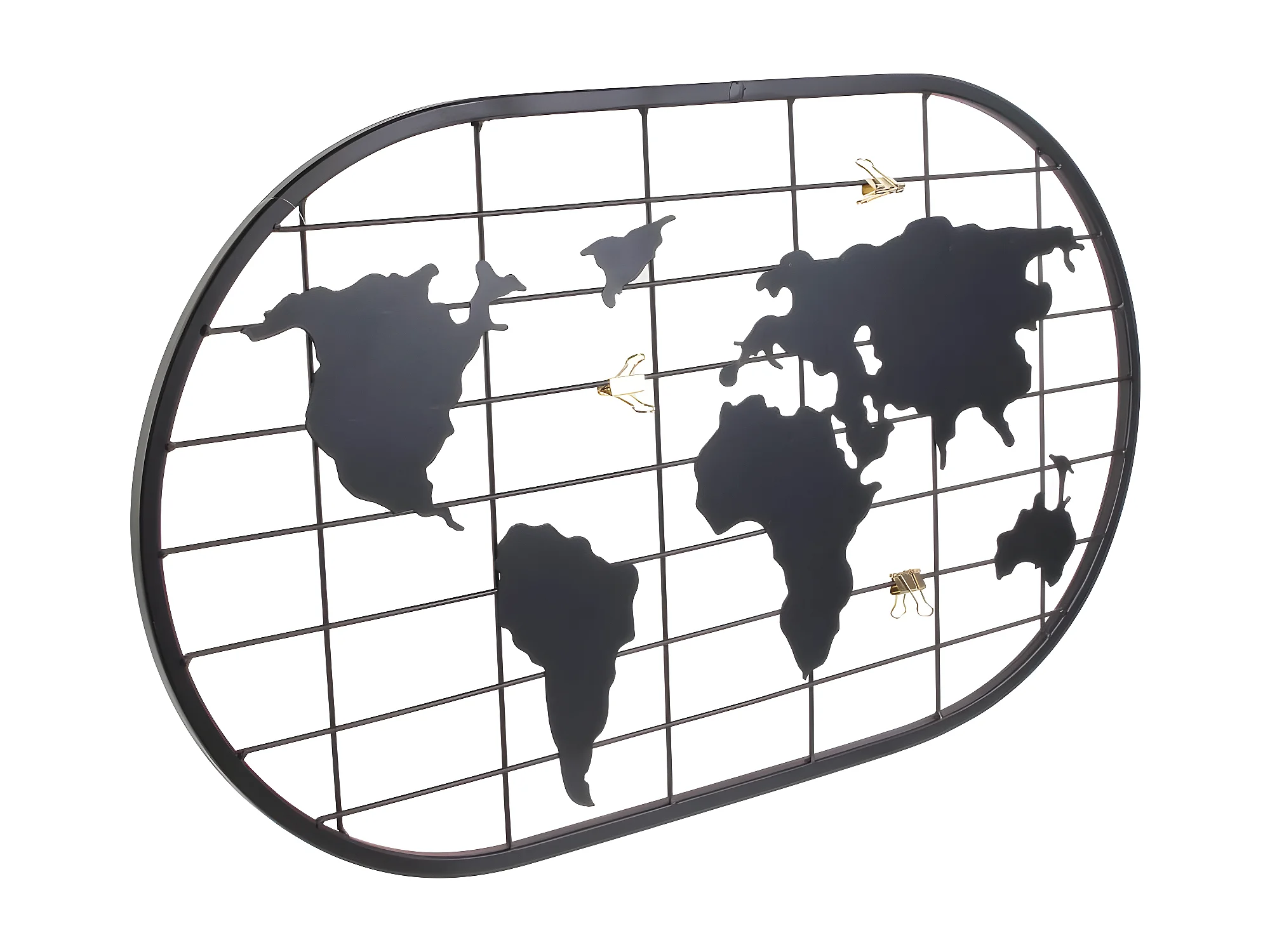 Présentoir murale Porte photos Mappemonde en métal noir 60 x 35 cm