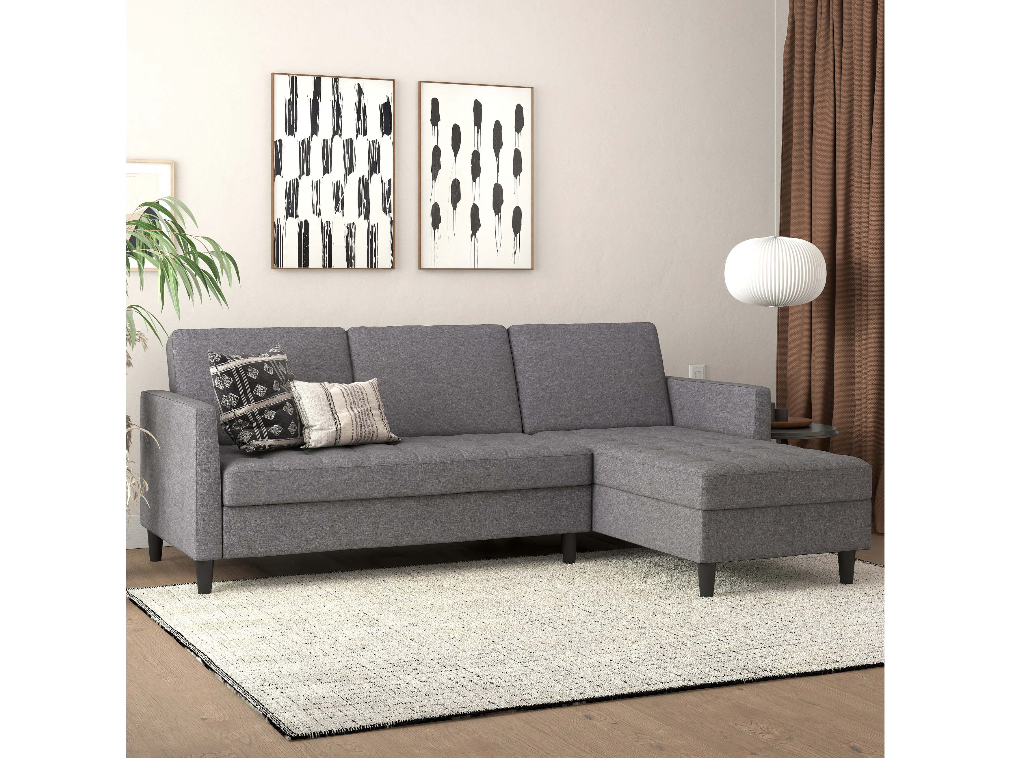 Presley | Canapé lit 3 places avec méridienne en lin gris