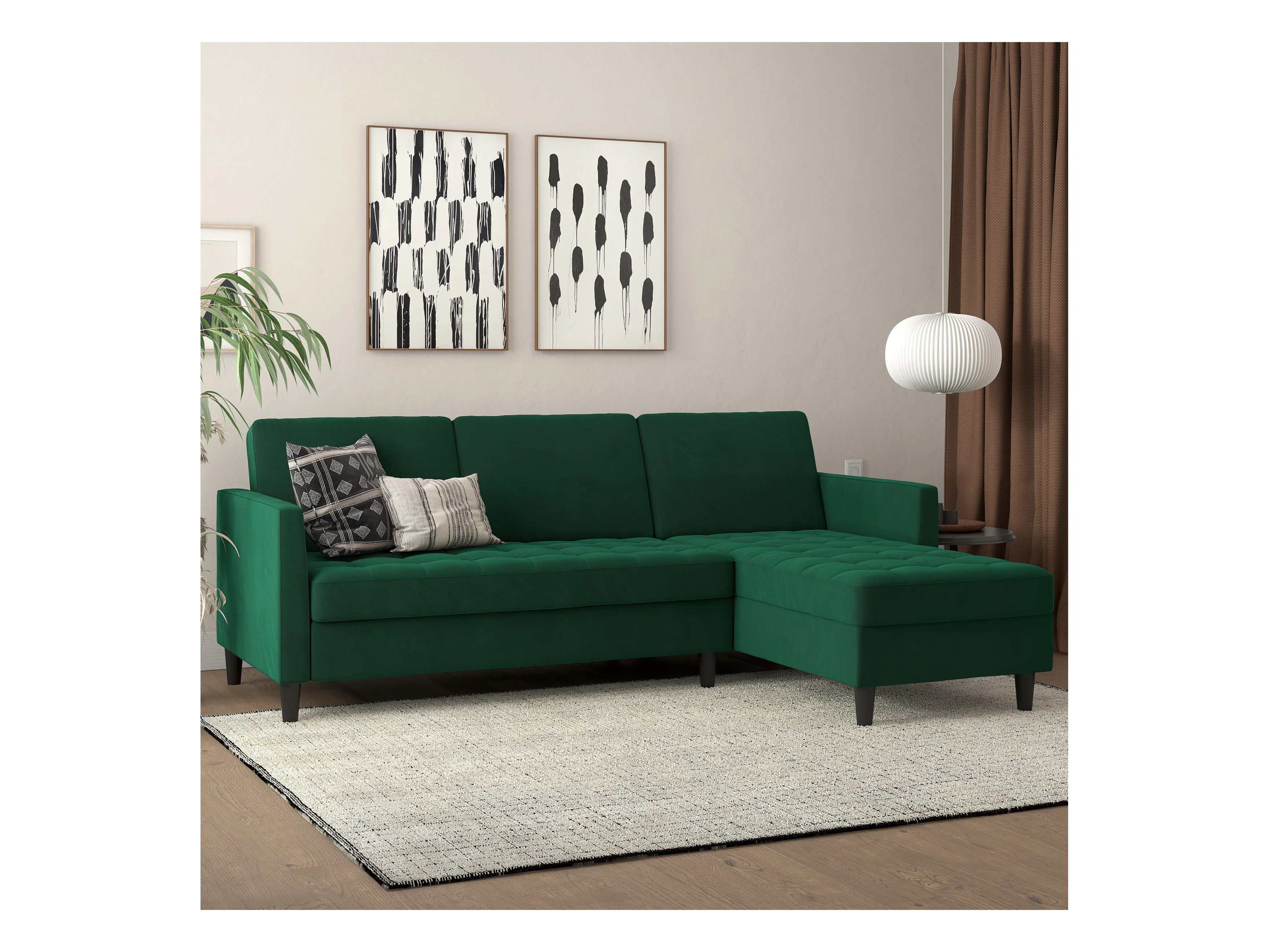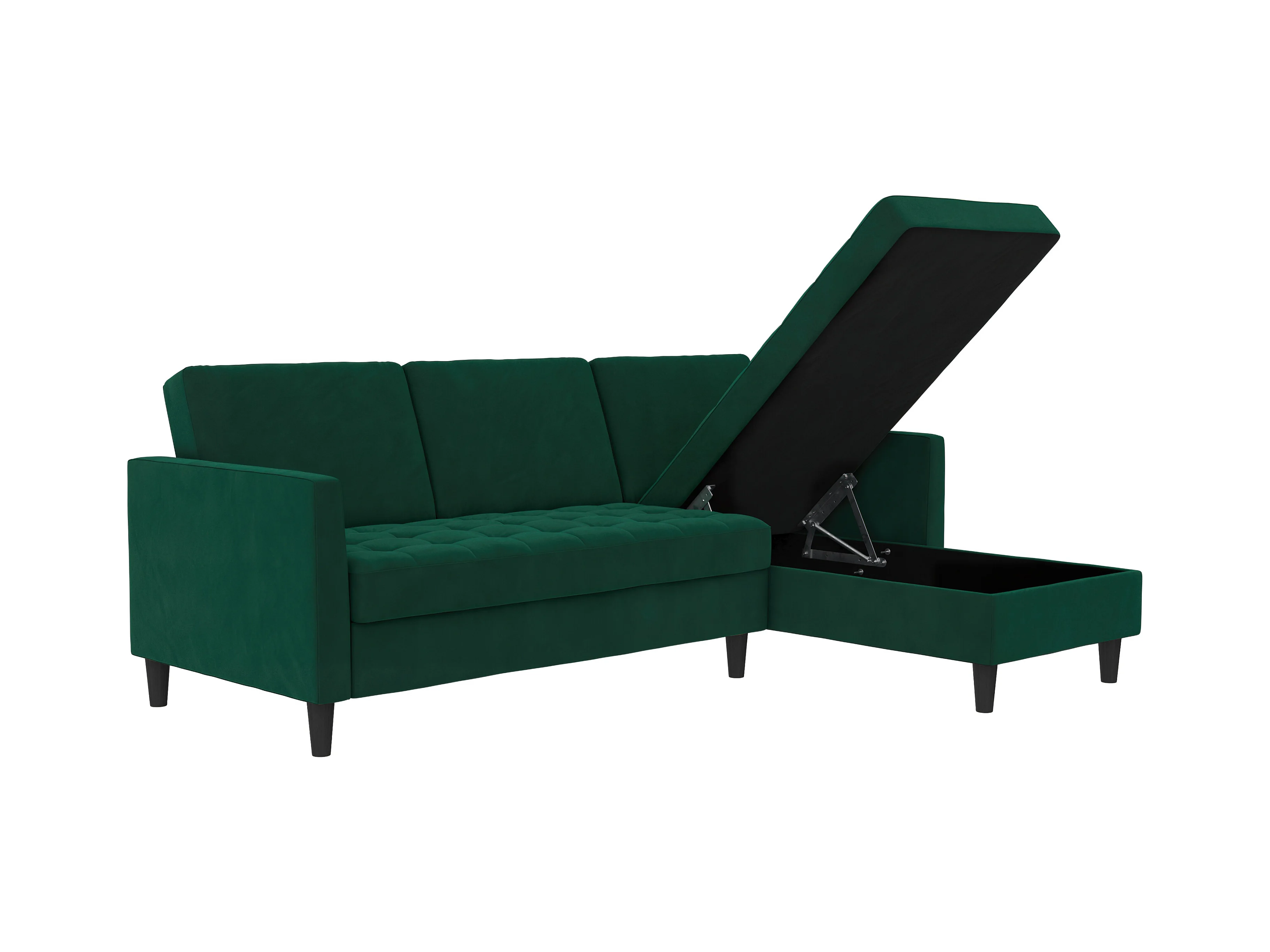 Presley | Canapé-lit 3 places avec méridienne en velours vert foncé