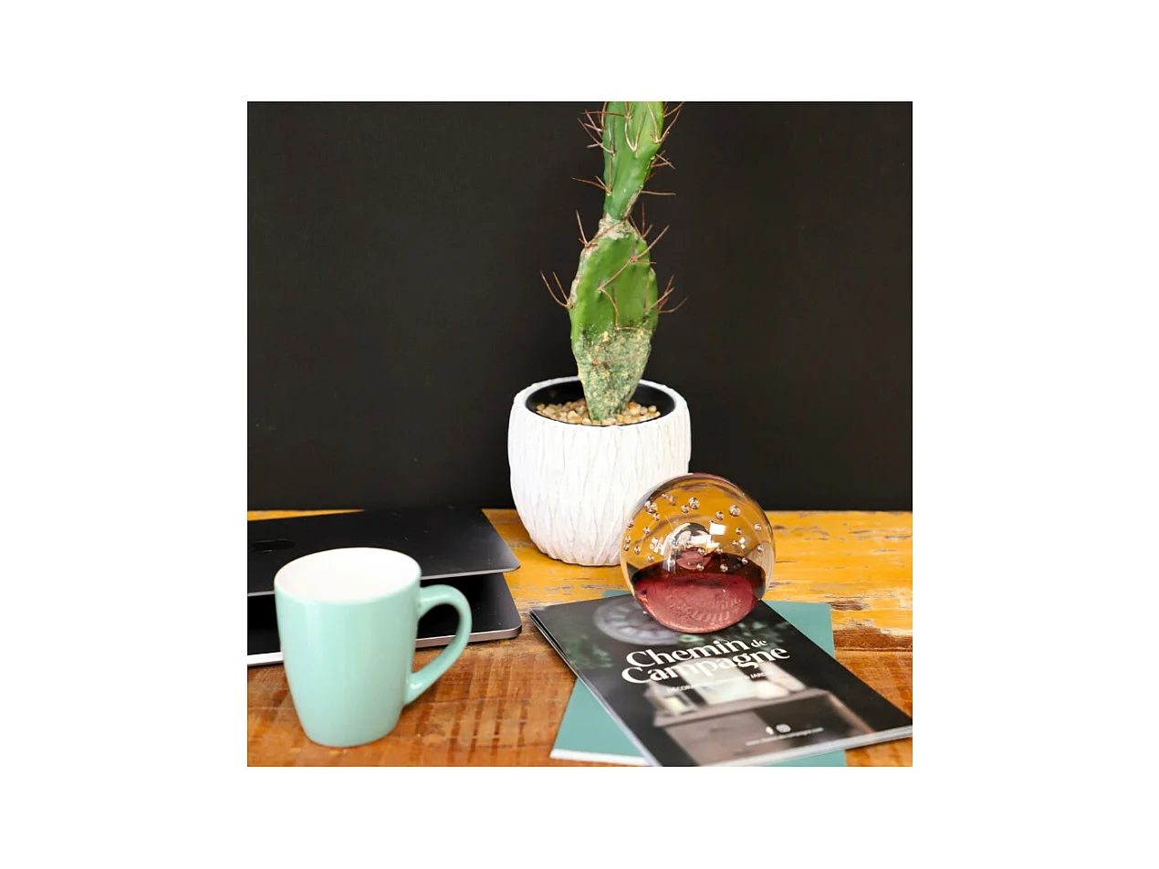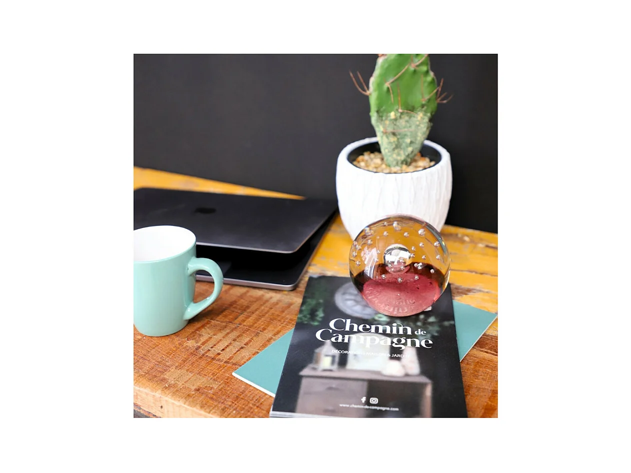 Presse papier sulfure "Flammes" en verre mauve Ø.8 cm