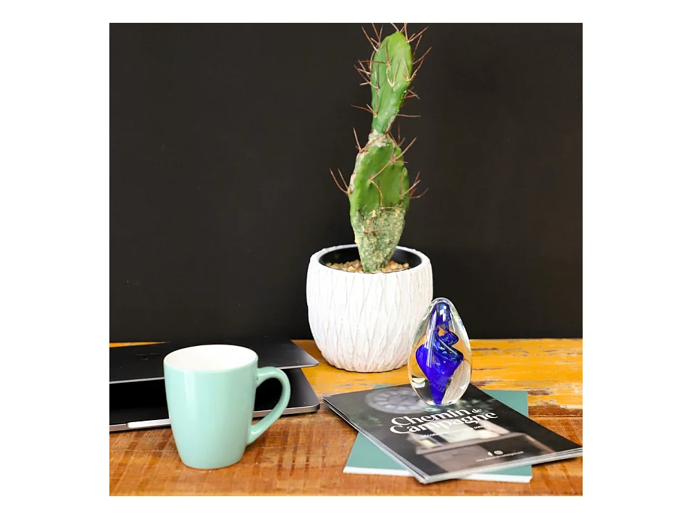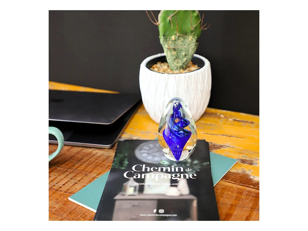 Presse papier sulfure en verre et bleu 10 x 9.5 cm