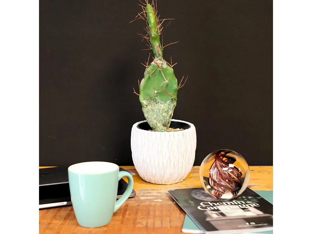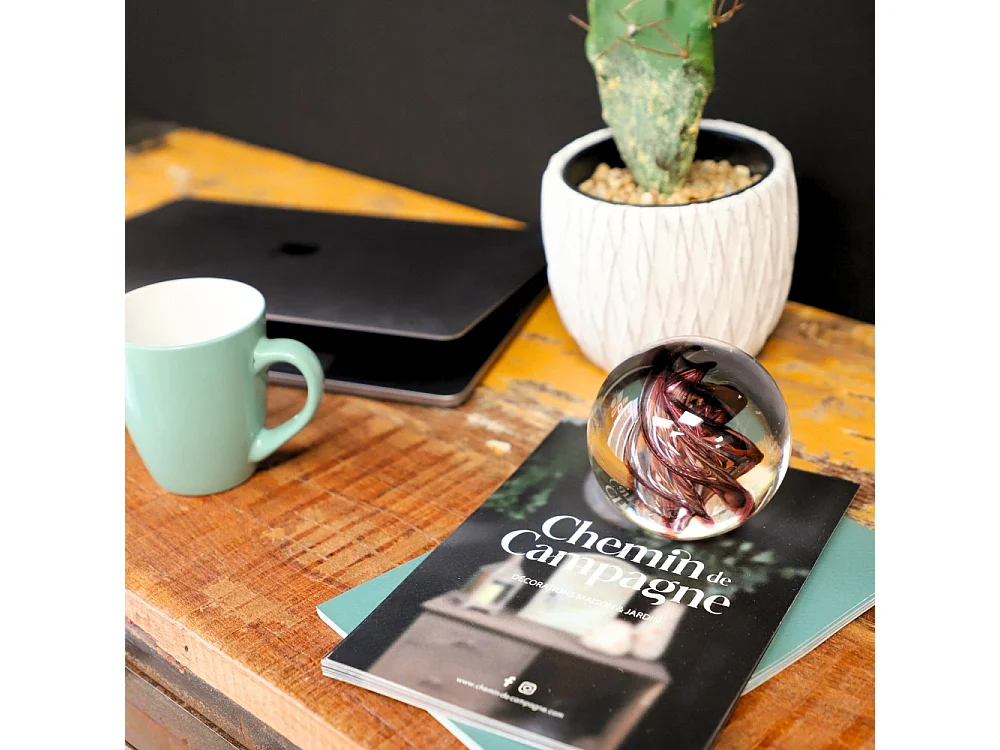 Presse papier sulfure "Flammes" en verre mauve Ø.8 cm