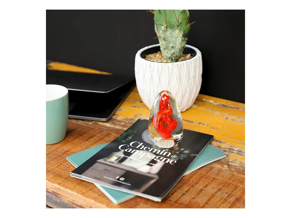 Presse papier sulfure "Gouttes" en verre rouge Ø.8 cm
