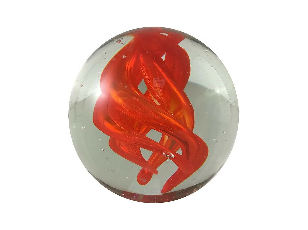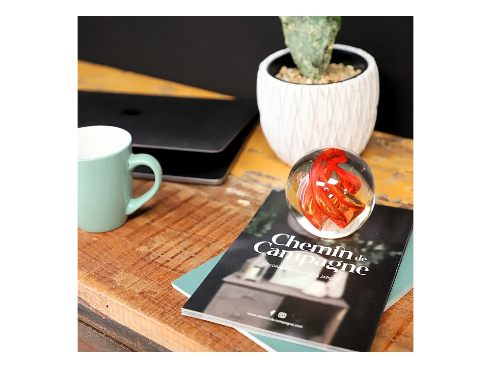 Presse papier sulfure "Tourbillons" en verre rouge Ø.10 cm